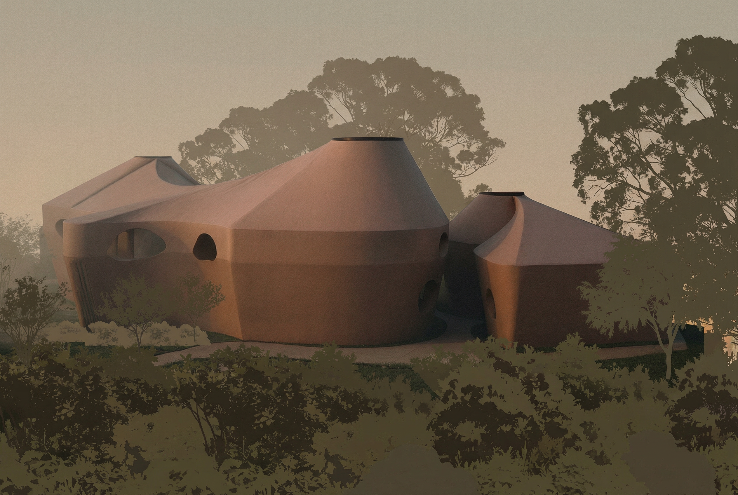 natural environment verticle doug fir siding central oregon landscape with juniper trees asphalt driveway less rustic more modern and japanese