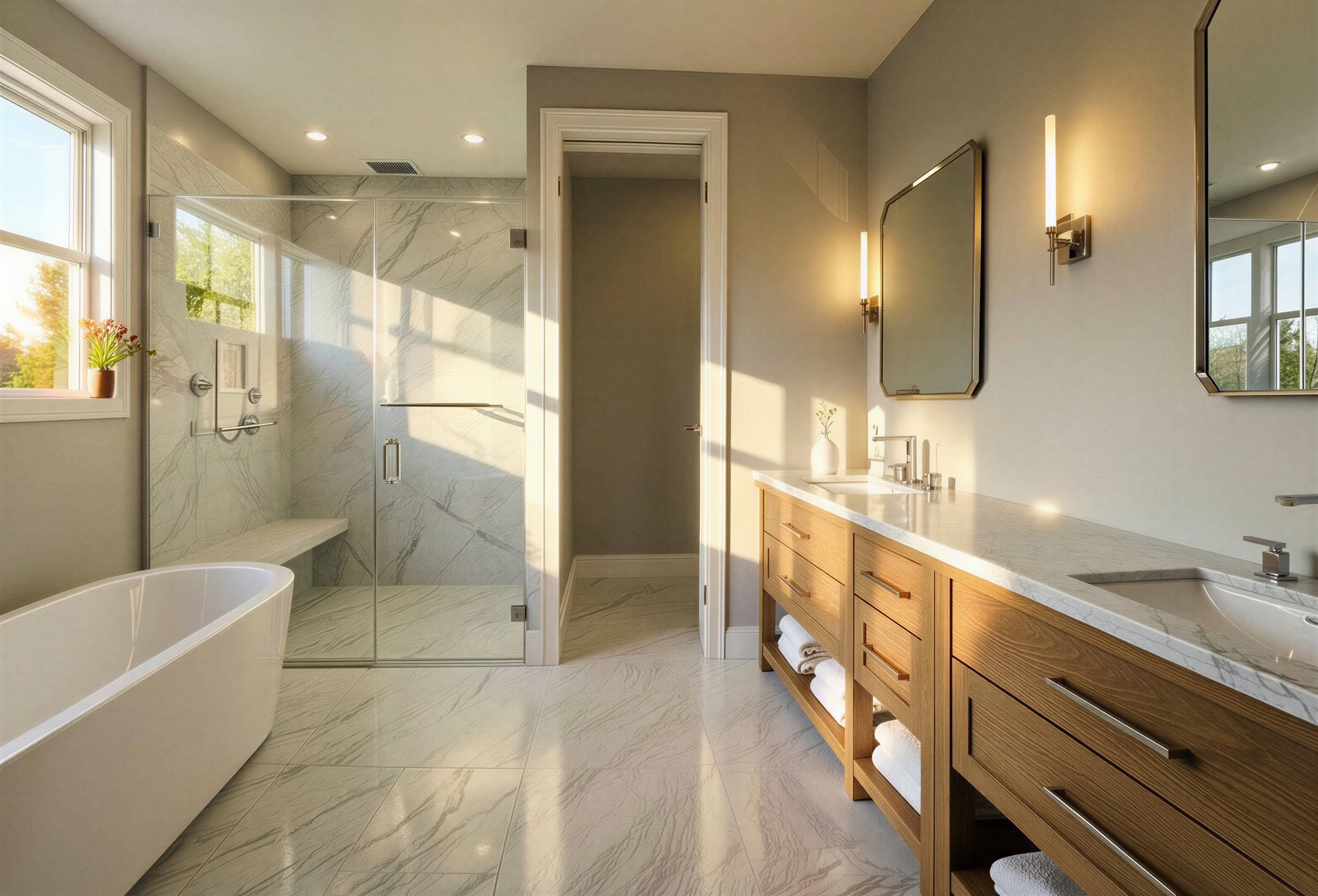 flip this photo and instead of door extend the shower to that frame