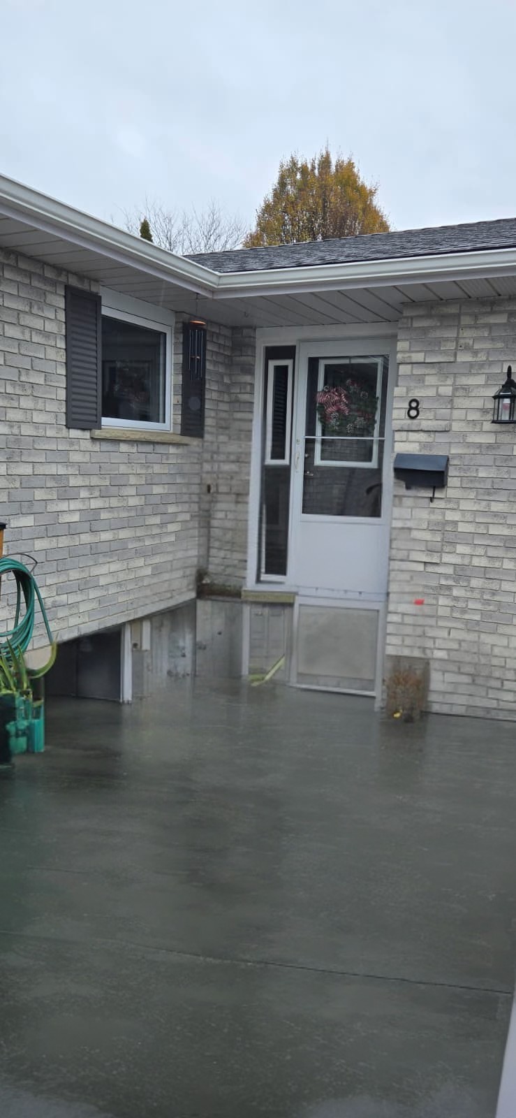 build a pressure treat deck the width of the front door area and then going over top of the basement window covering it with pressure treat boards 5 quarter deck boards and steps off to the right of the deck architecture