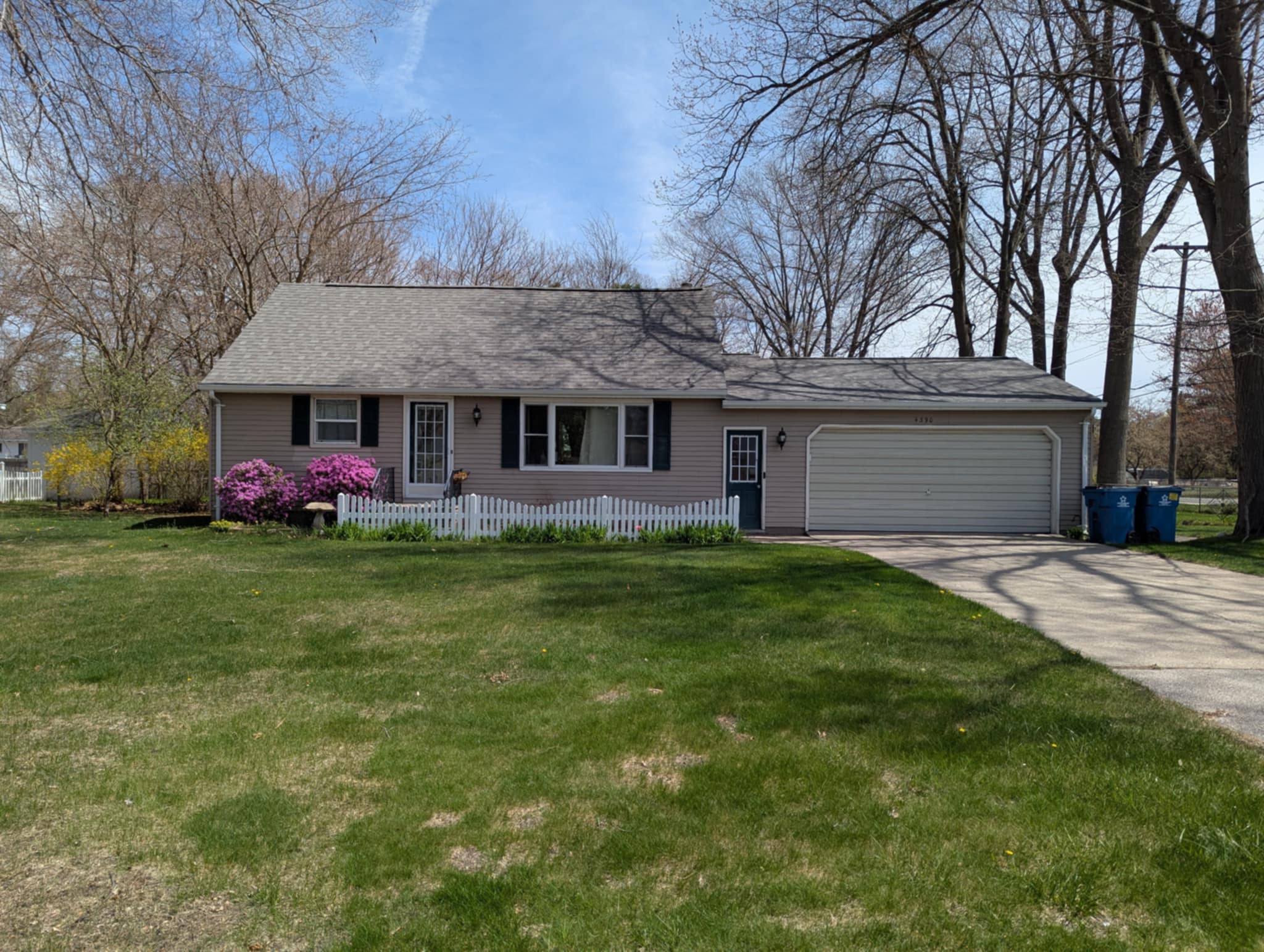 keep the windows and door exactly as shown add a new front porch with gable roof new garage door and new siding