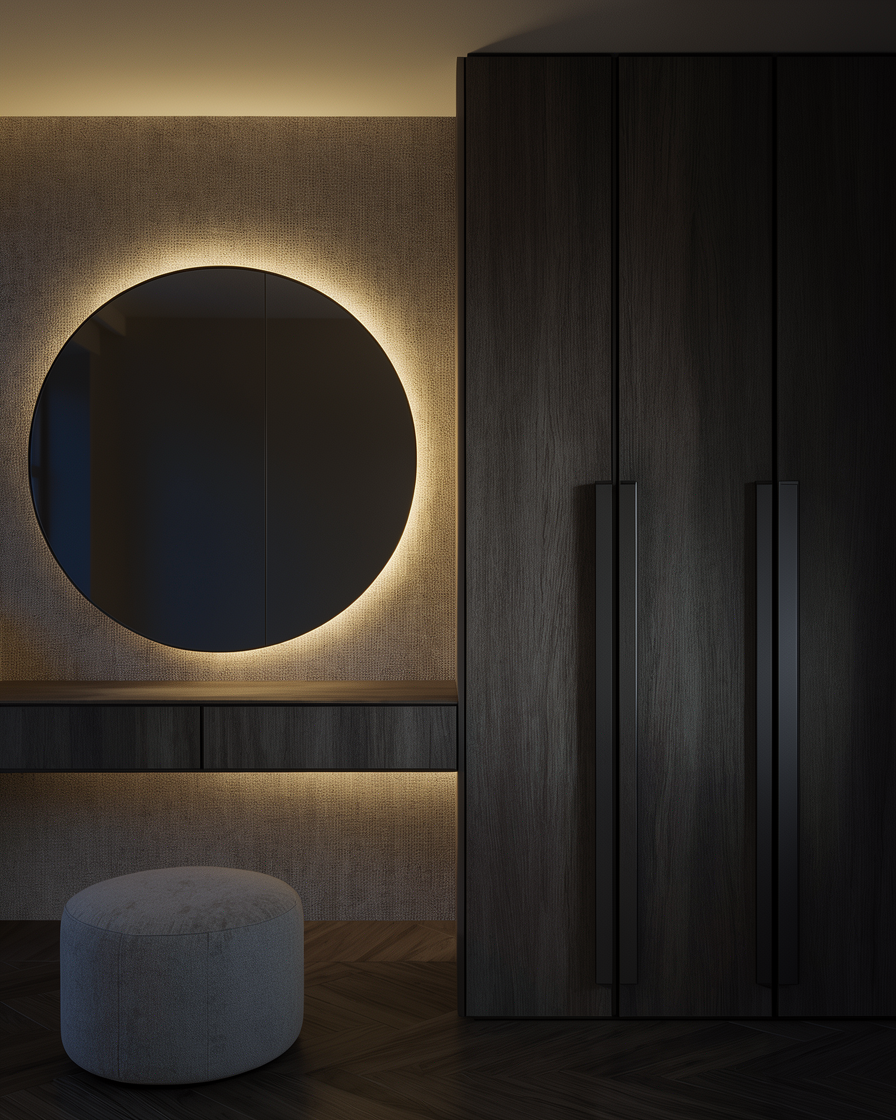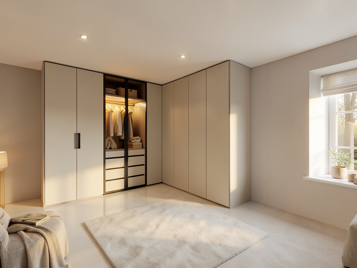 cozy ambient minimalist wardrobe soft colors no handles keep original nodes