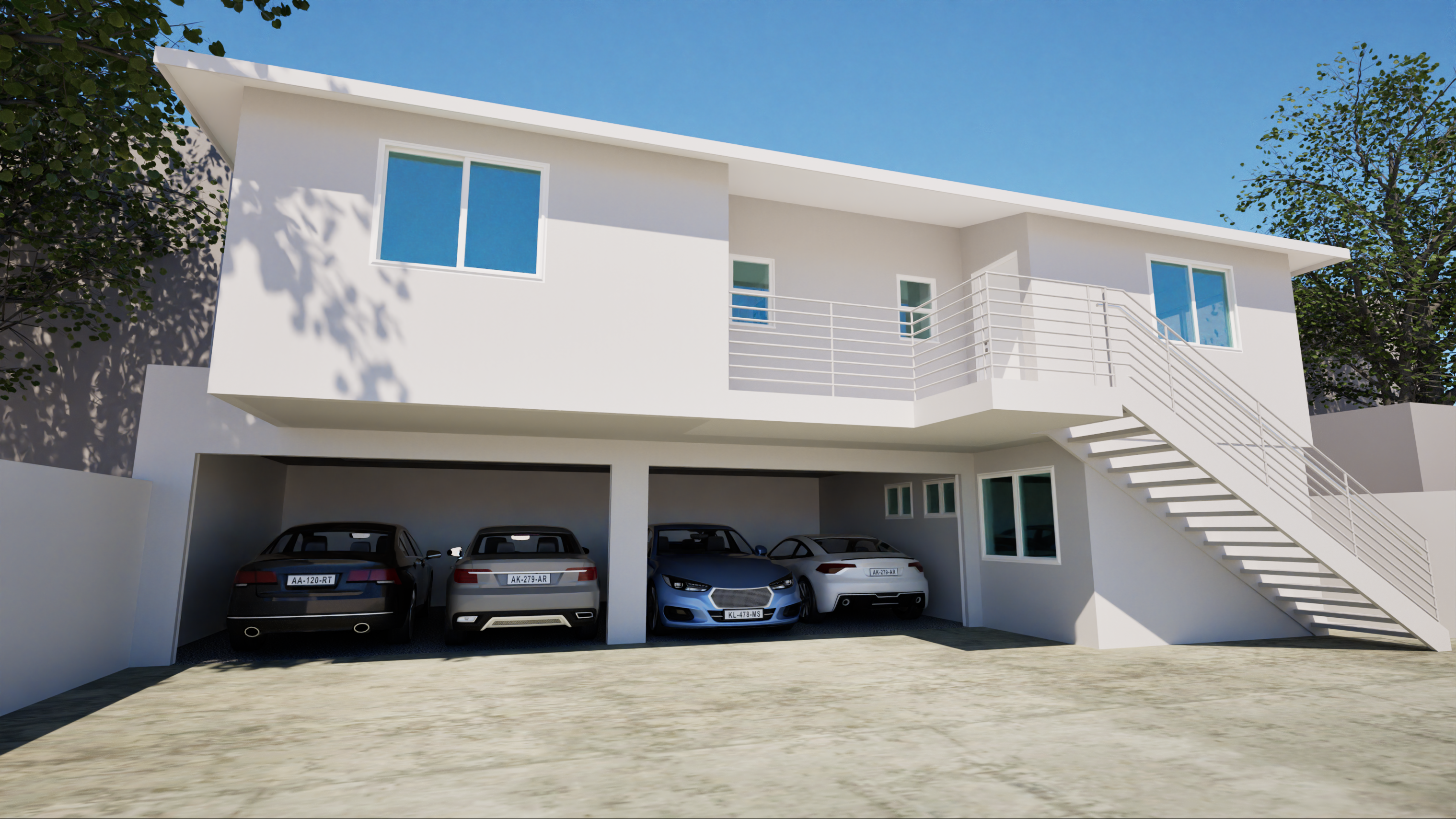 convert to a photorealistic image building with smooth white plaster finish in sunny california weather