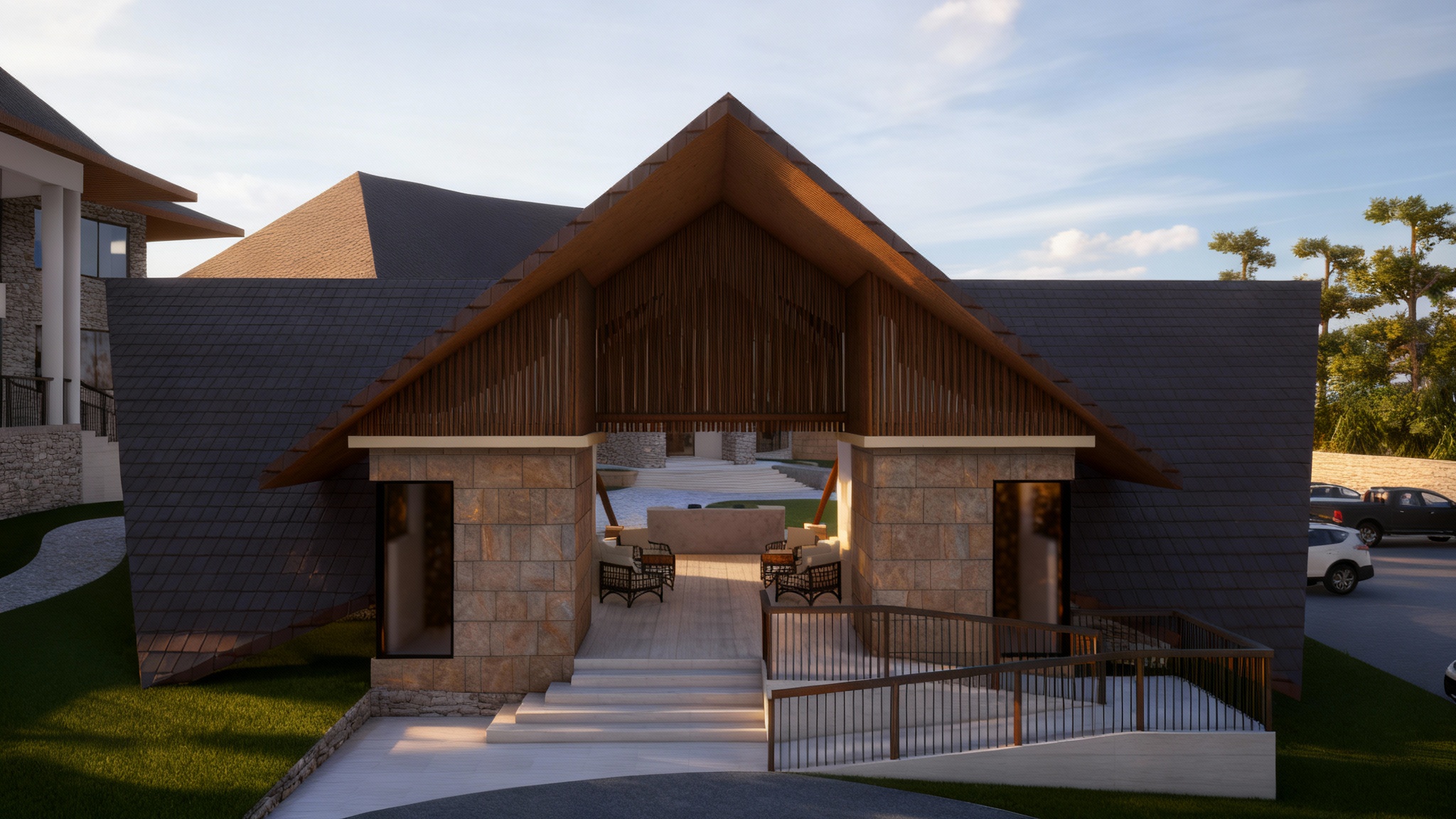 contemporary exterior shot make it look cohesive make it look like a single house architecture