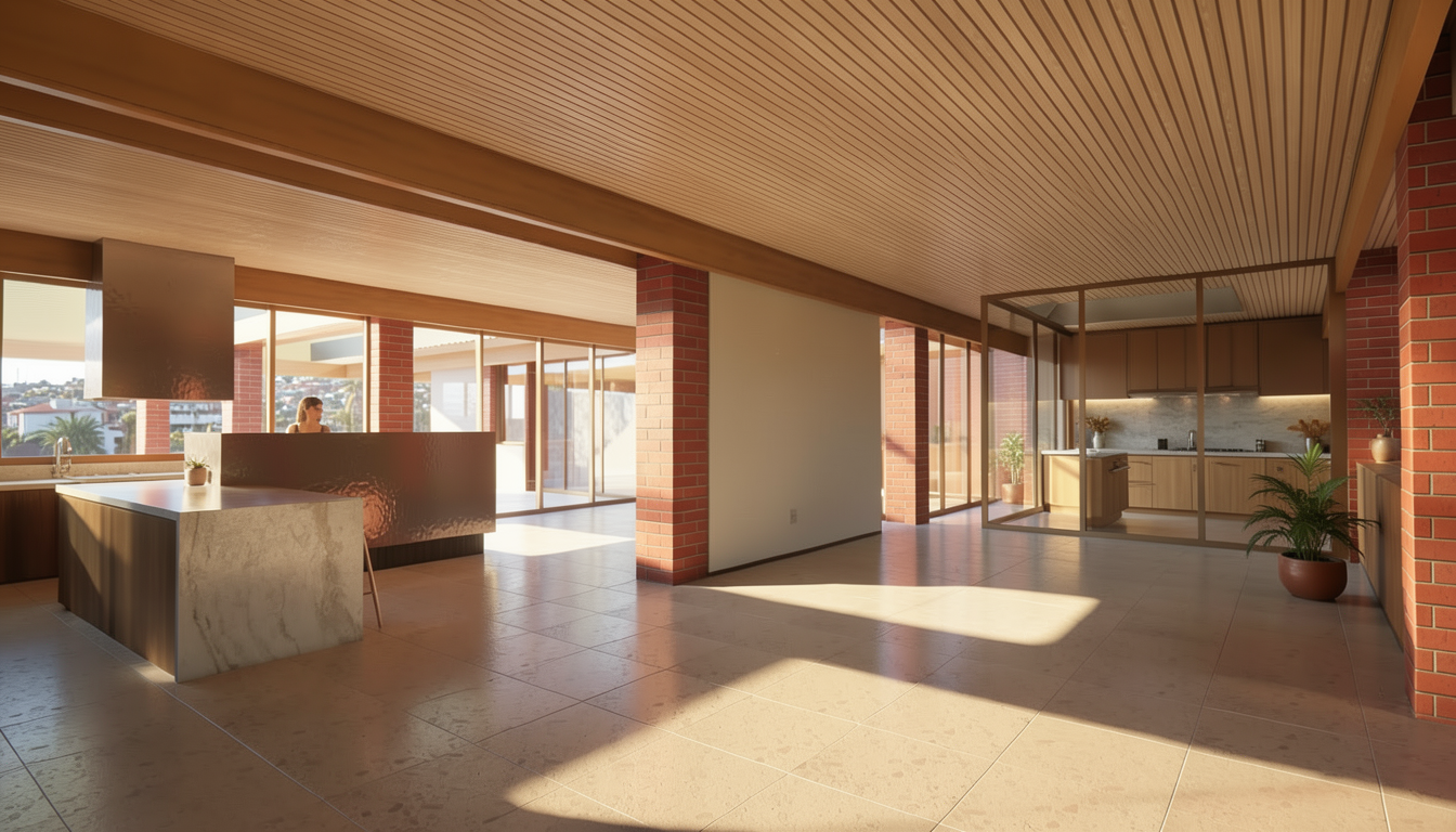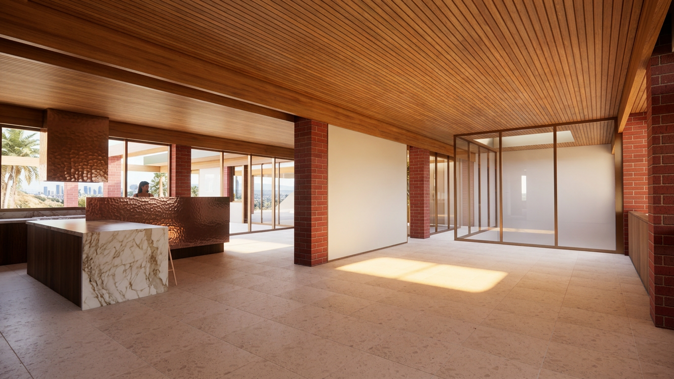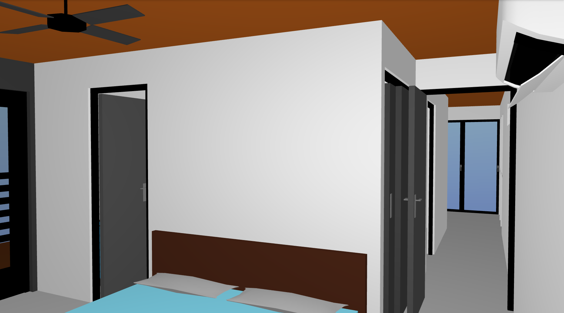 the ceiling and floor should be in a walnut plank both going front to back add fluffier pillows and a nice cozy comforter to the bed