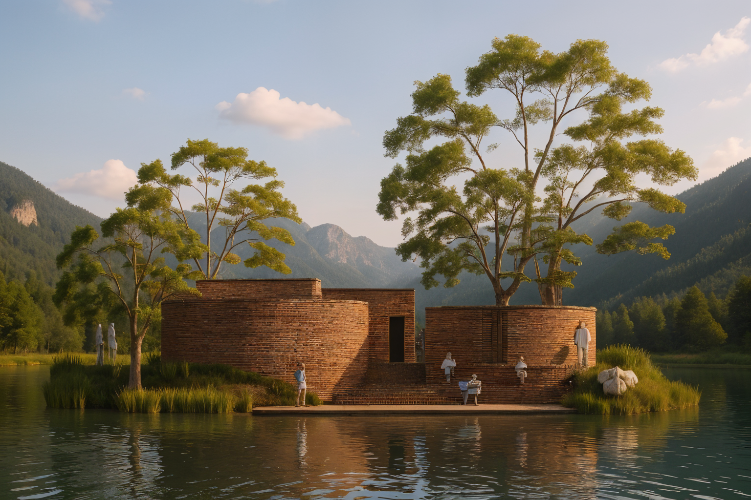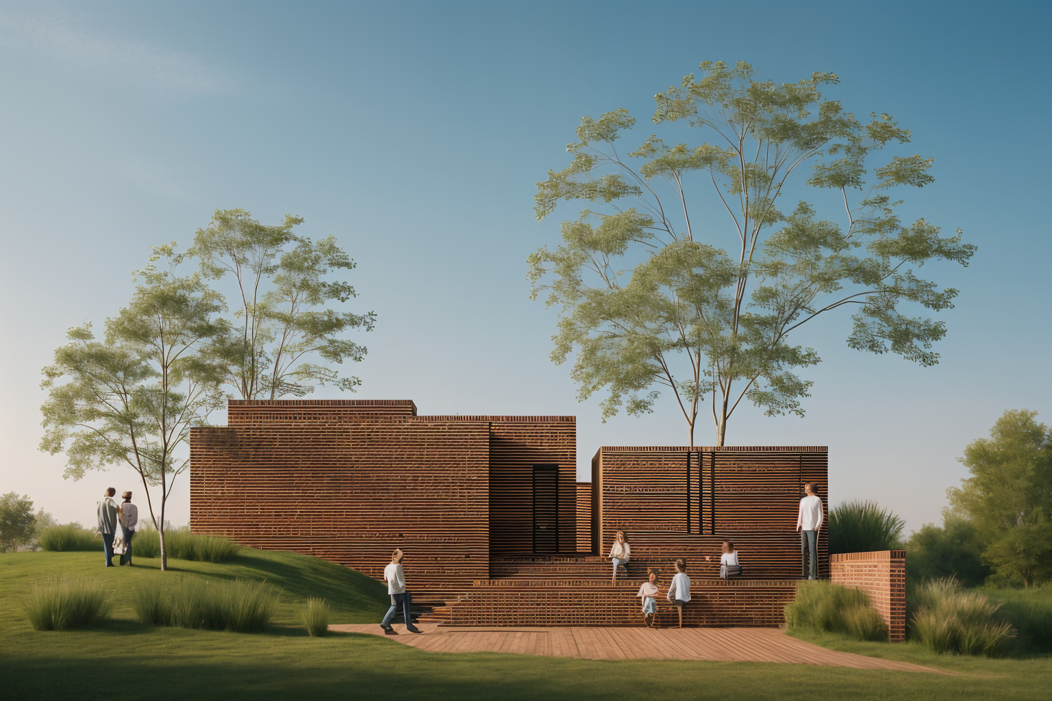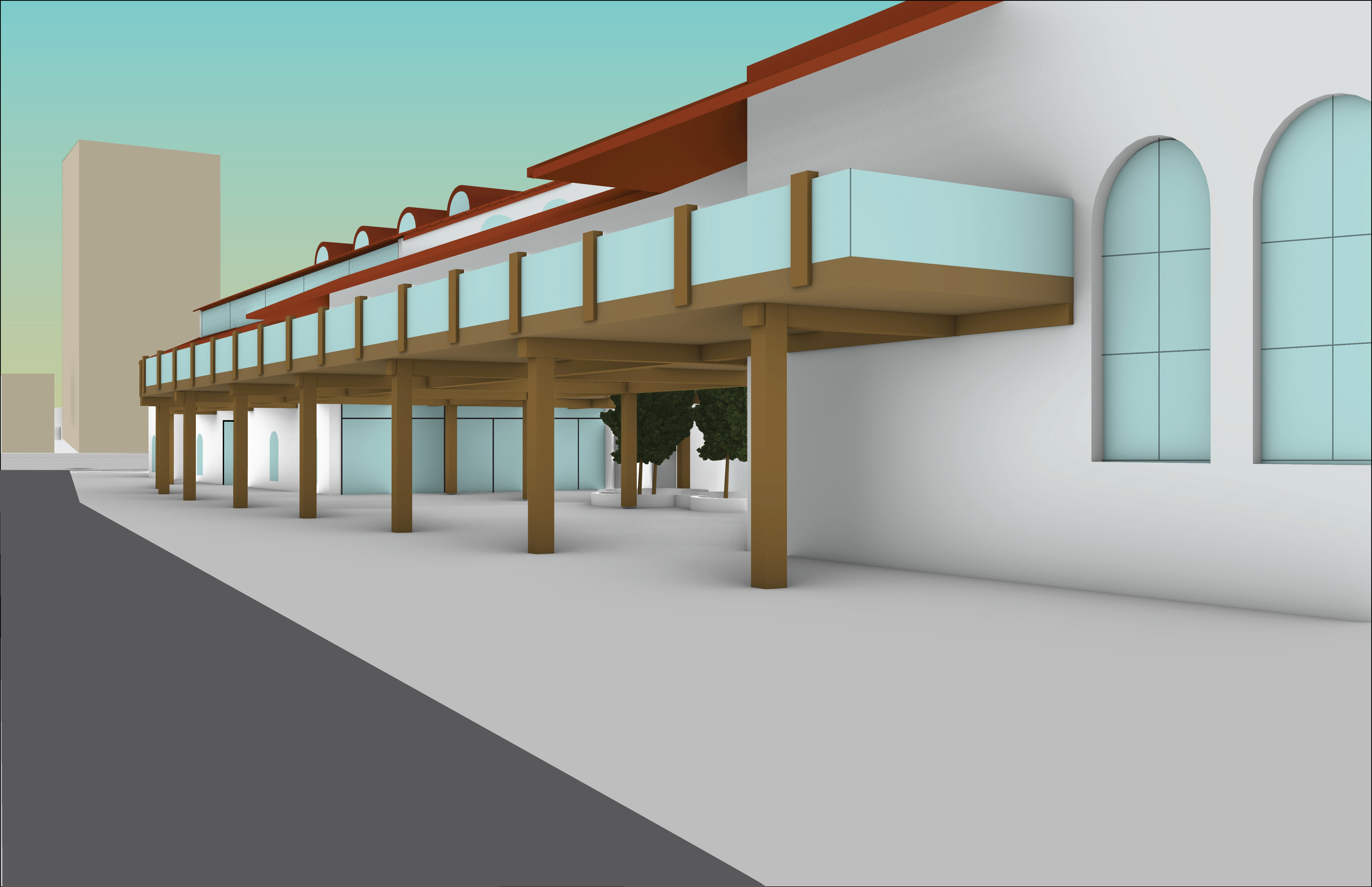 render a street scape in phoenix with a white stucco facade and red clay tile roof make the balcony railing glass