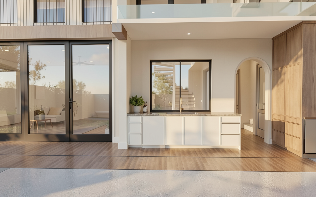 make the external cladding mat black corrugated iron and the fins a vertical charred timber on the inside faces