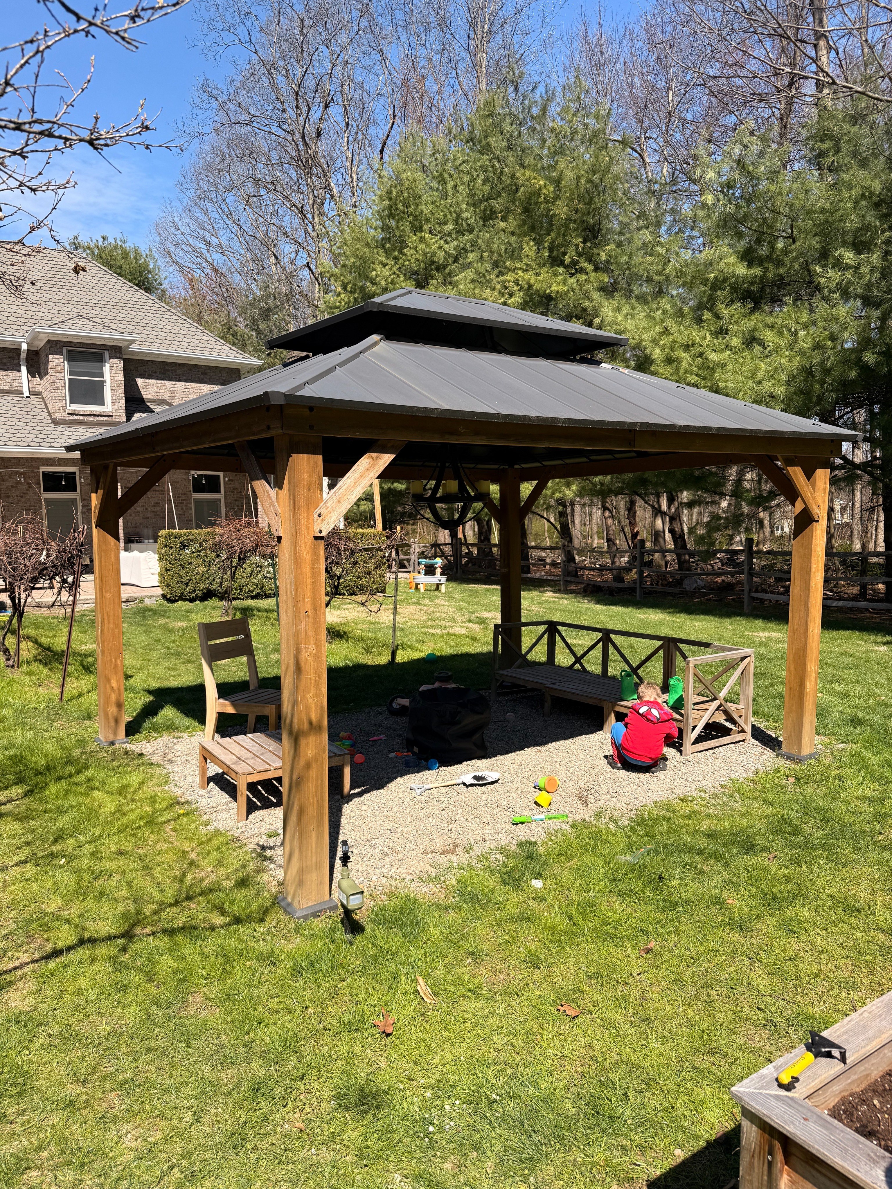 add a sofa and coffee table add curtains and a movie projector screen hanging inside the canopy on the left