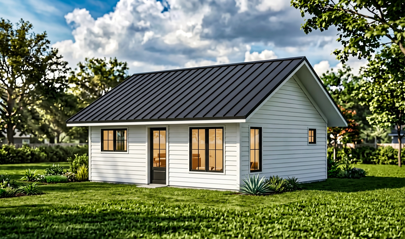 show this in cobblestone color board and batten with light stone around the bottom of the house black front door and garage door
