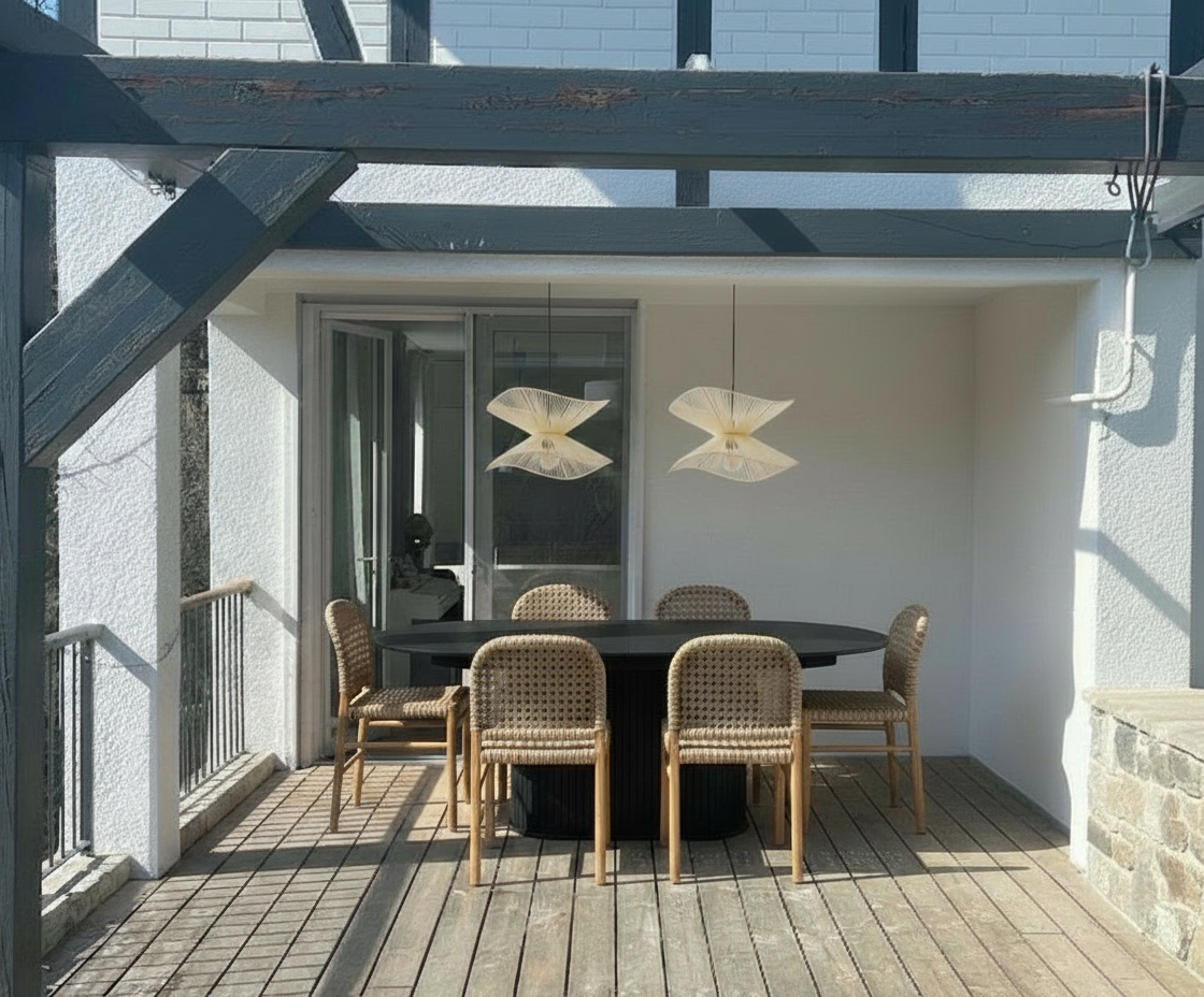 add sliding glass doors from reference image in front of the table and chairs