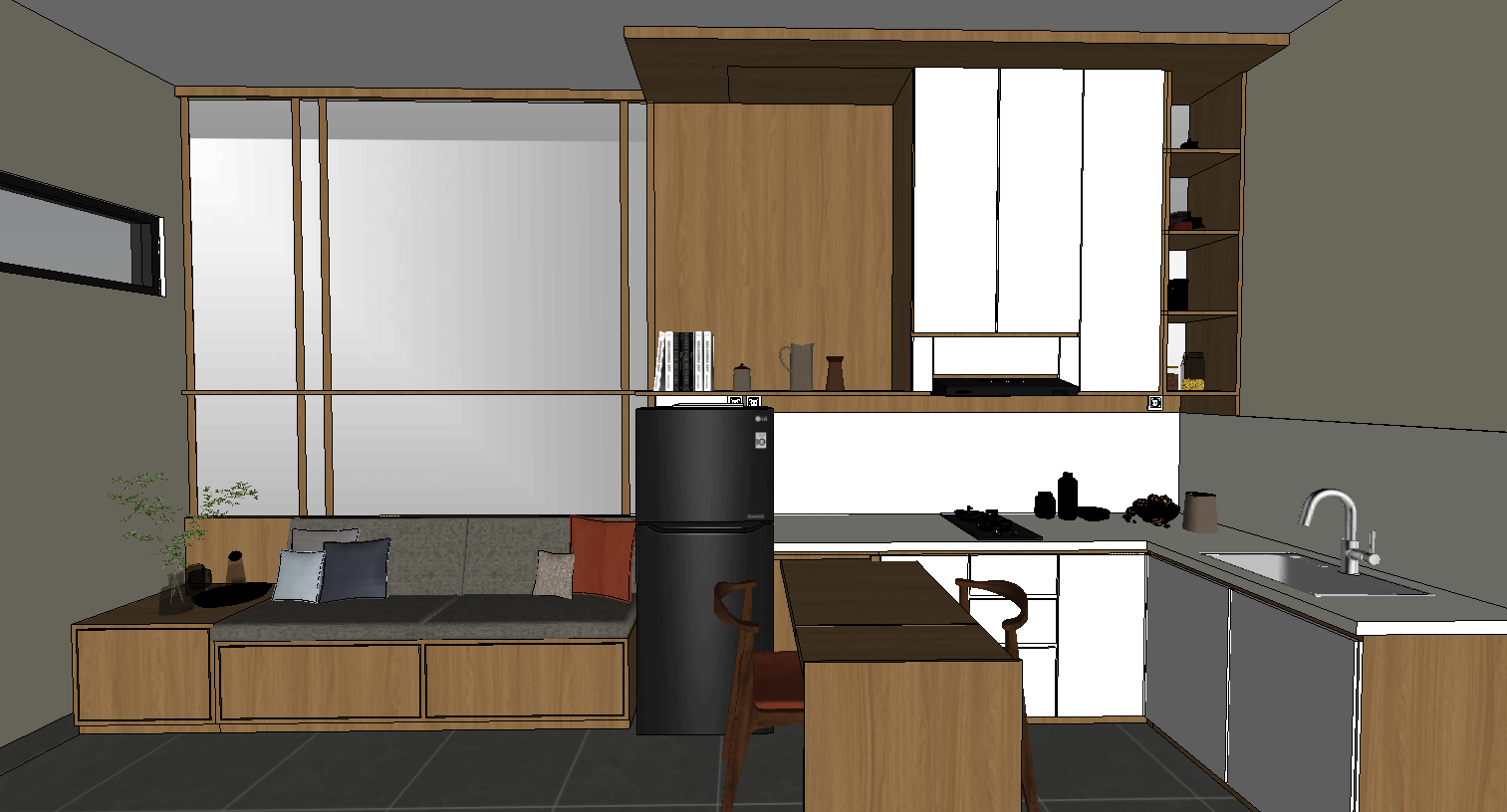 make ultra realistic image without changing any structures shapes design and materials do not change the jpeg size use light wood color add mirror above the bench use japandi style