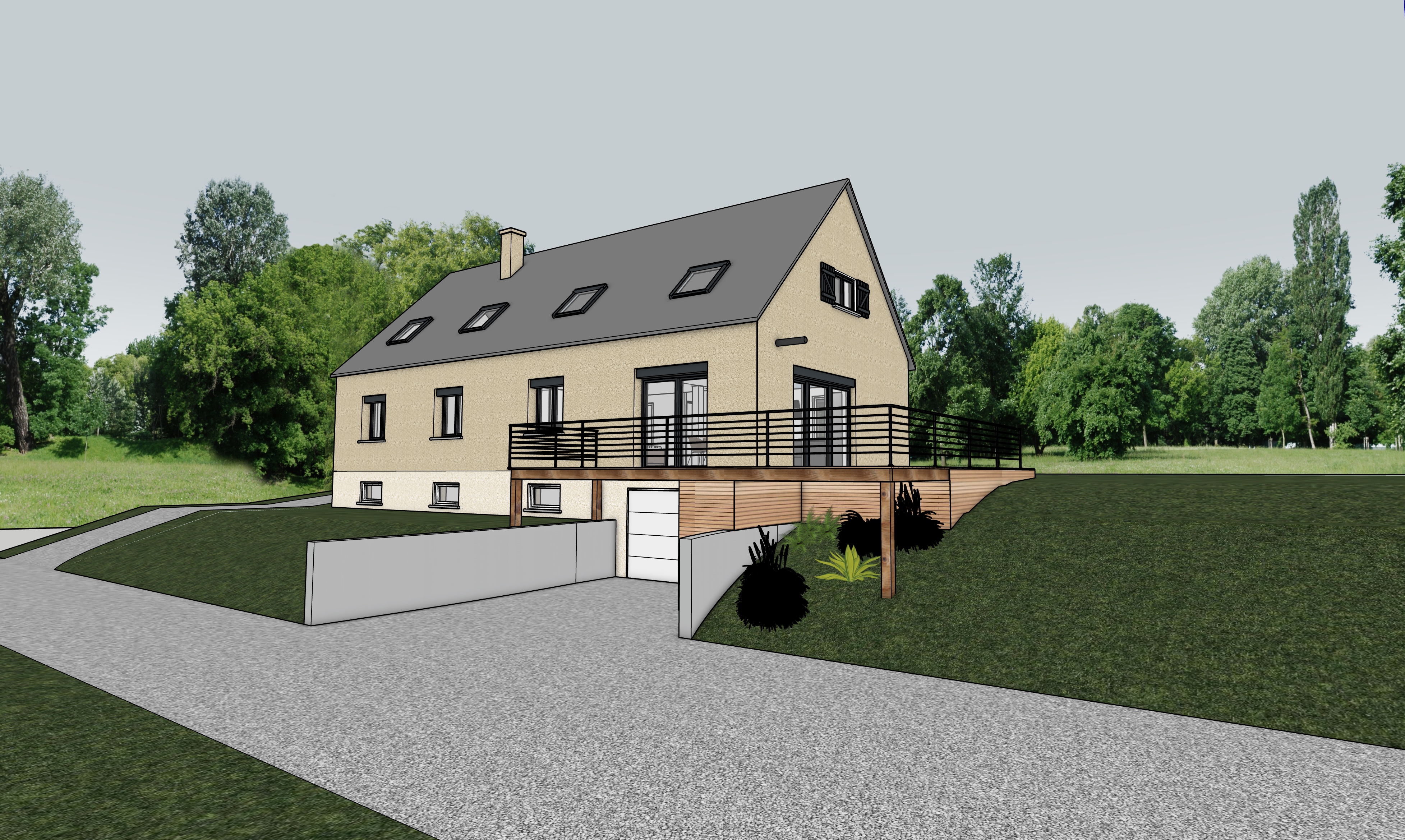 garde les volumes couleurs et mat riaux d origine mercedes gla noire devant la porte de garage un homme de dos debout sur la terrasse pelouse et plantation