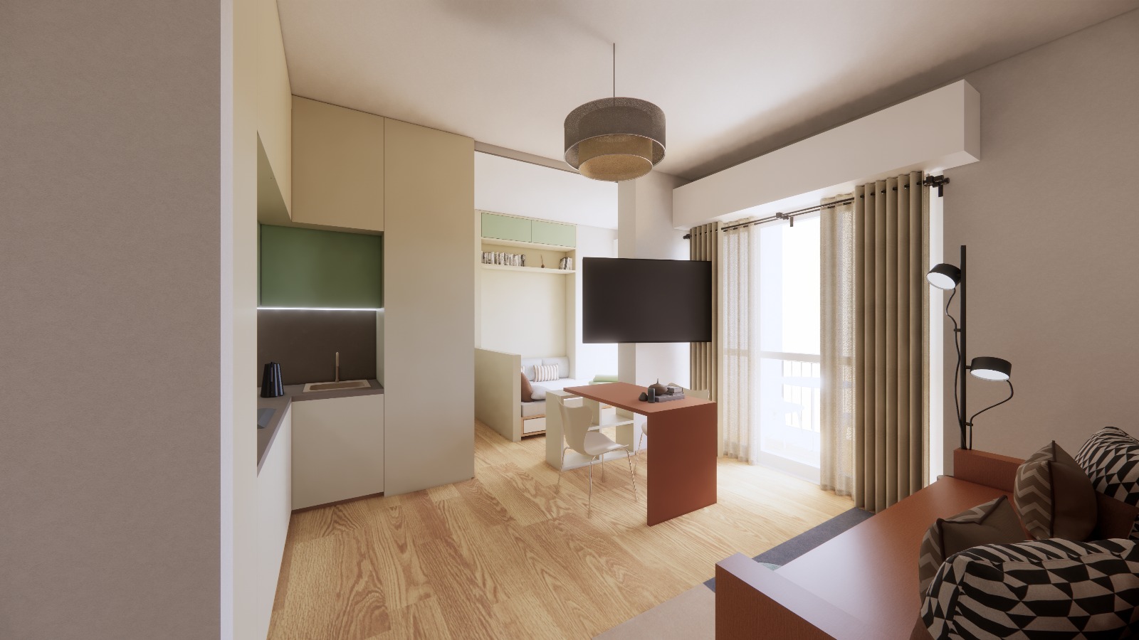 i need to henance my render keeping it close to mine i would loove to take 3 options of colours focusing on pastel colours work mainly on kitchen s and fourniture colours architecture