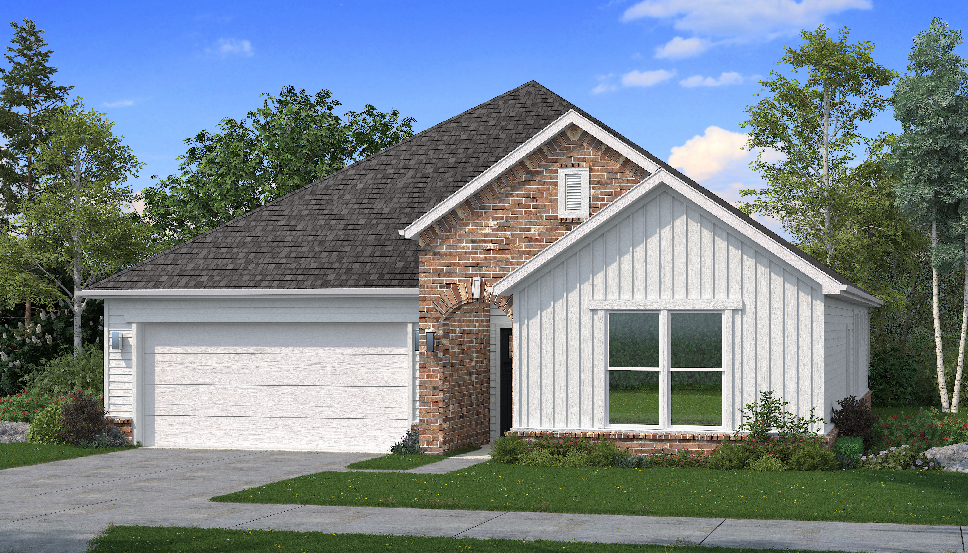 update the rendering to have saltgrass brick black garage black soffit fascia black roofing front door be tin lizzie sw 9163 siding to be sw 7004 snowbound