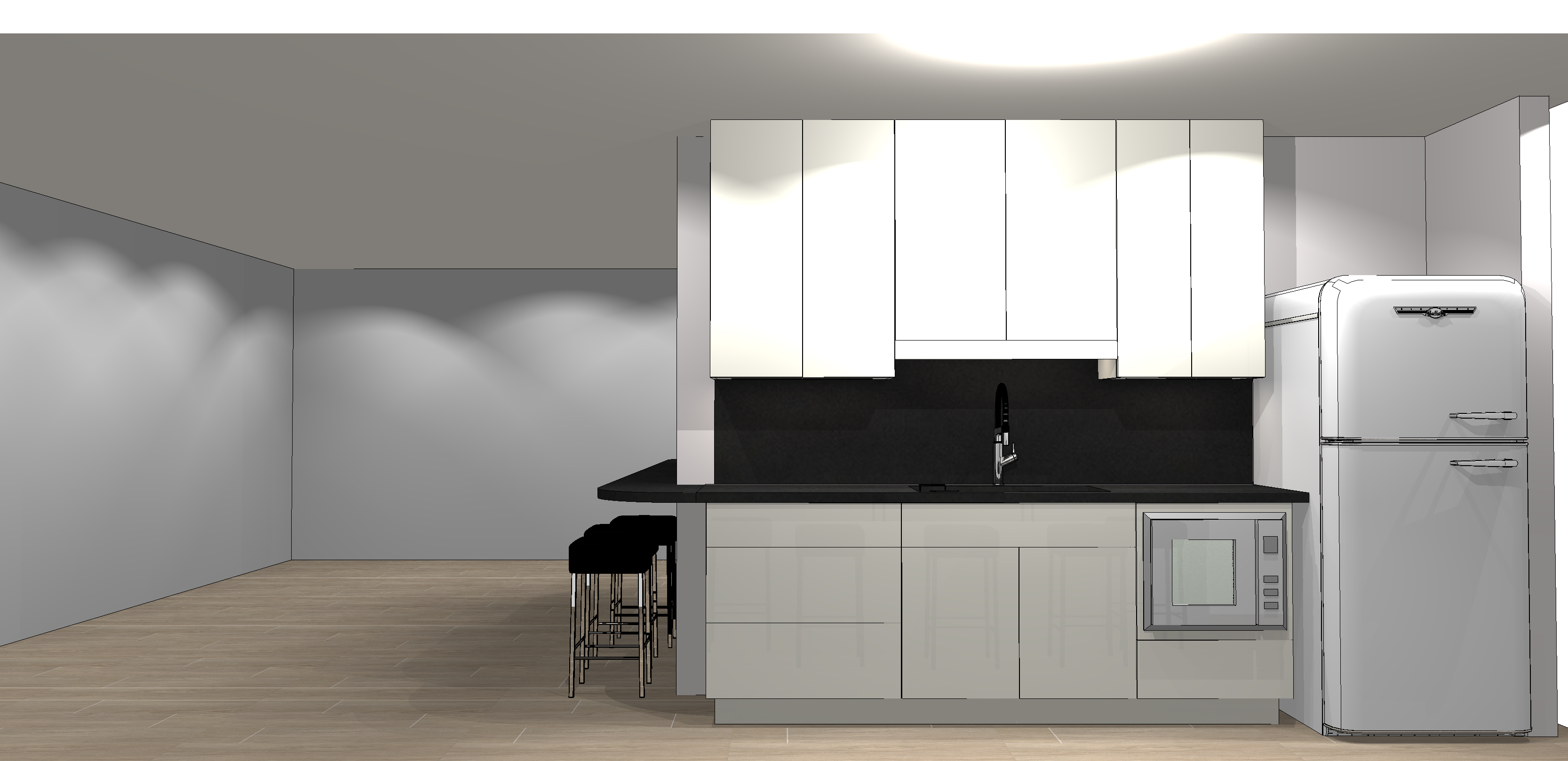 make it realistic keep layout keep finishes cabinets are white high gloss