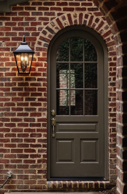 draw a classy southern greek revival style house with white siding dark green shutters and a pretty stained front door with an ellipse transom above the front door i want you to incorporate brick arches like my photo around the house to make it stand out