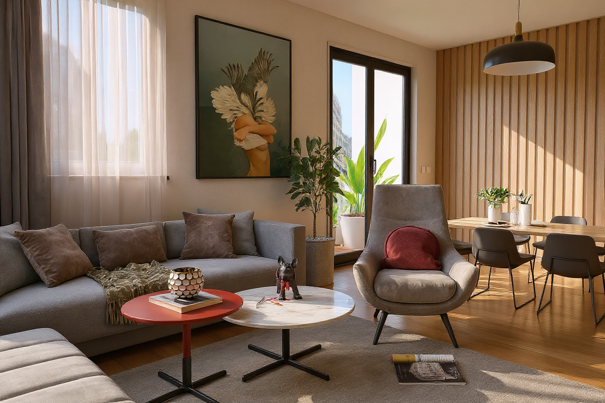 review view of house no stone or brick on house zoom out add trees to the side add a rectangle pool with built in spa at same level as pool cedar gazebo with curtains add outdoor furniture add landscaping updated vertical batten siding black windows add stairs from the right side of the second story deck which is in the center of the house to the right coming down straight away from the house charcoal roof cedar posts under the deck