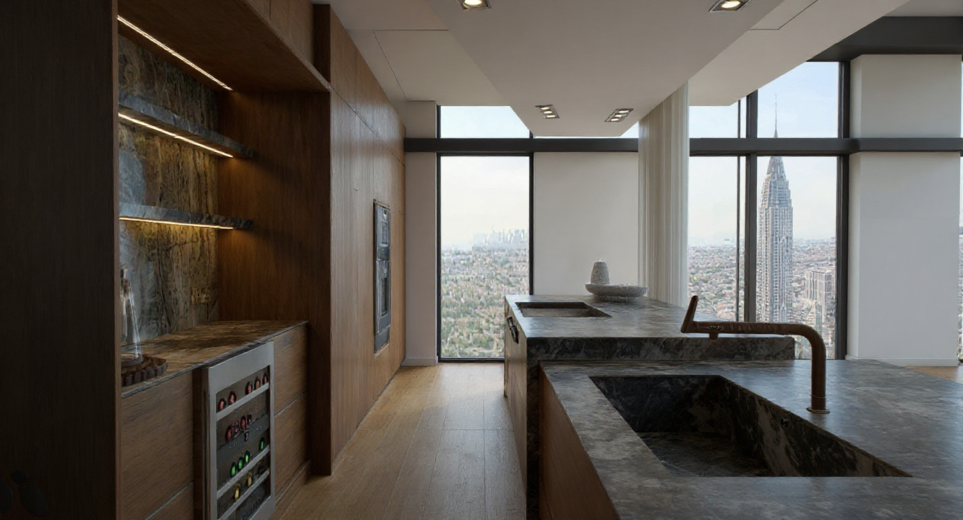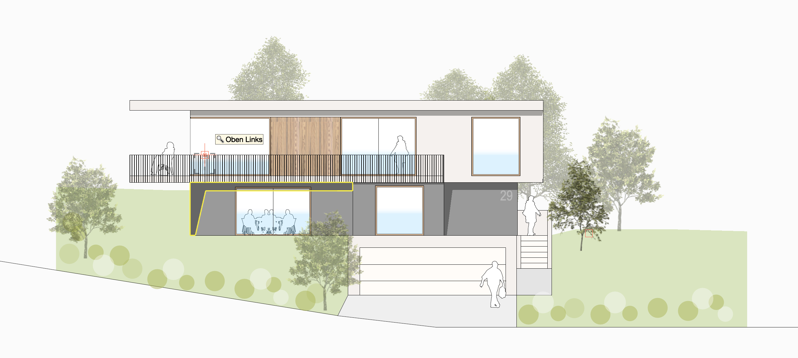 modernist exterior shot modern architectural building in a serene setting featuring a sleek minimalist design use soft white for the building s exterior complemented by earthy wood accents on the paneling the balcony railing should be a dark charcoal gray providing contrast for the windows ensure a subtle blue tint to reflect the sky surrounding the building depict lush trees with various shades of green adding depth and vibrancy the ground should be a gentle light green creating a harmonious landscape capture a peaceful modern and inviting atmosphere with balanced natural and architectural elements architecture