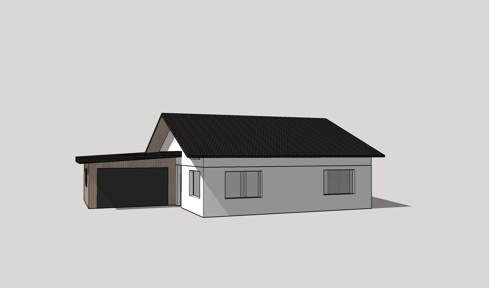 nordic exterior shot background forest and meadow no fence wood paneling for garage white facade for house dark roof architecture