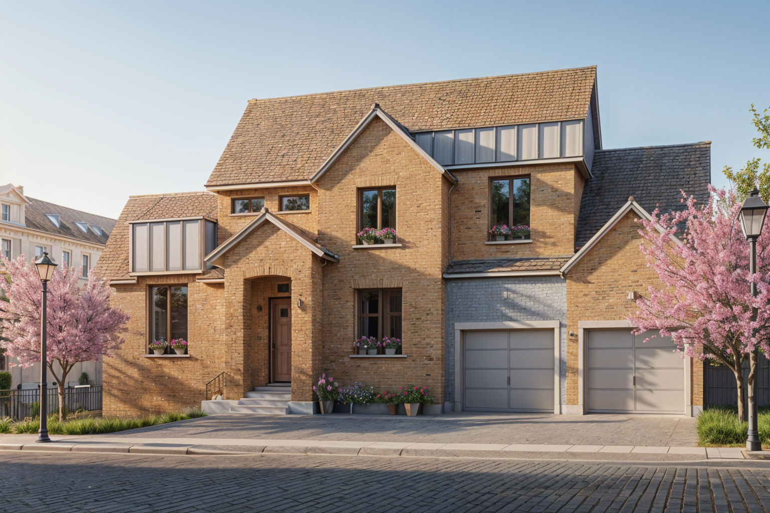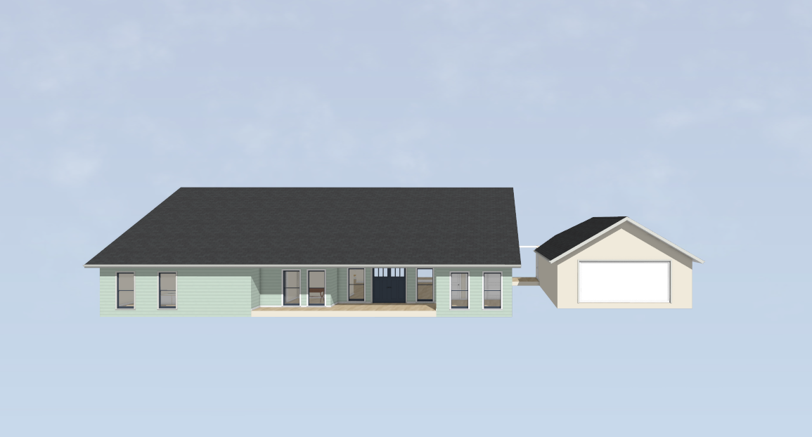 transform this modern single storey building into a barn inspired rural modern design while keeping the existing structure and proportions unchanged retain the dark vertical cladding across the main facade introduce natural timber elements along the lower portion of the building including vertical timber posts and feature battens to create rhythm and warmth add a subtle base layer of timber or material contrast at ground level to break up the dark cladding incorporate a covered verandah feel using evenly spaced timber posts inspired by barn and shed style architecture keep detailing simple and clean no excessive ornamentation maintain large black framed windows and modern proportions but soften the overall look with natural textures and a country aesthetic no oversized barn doors keep openings minimal and refined overall style modern barn shed australian rural luxury balanced contrast between dark cladding and warm timber clean lines architectural simplicity