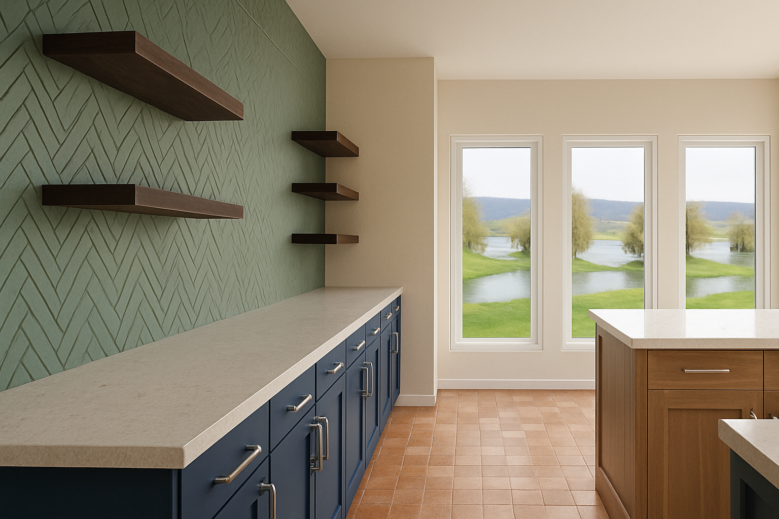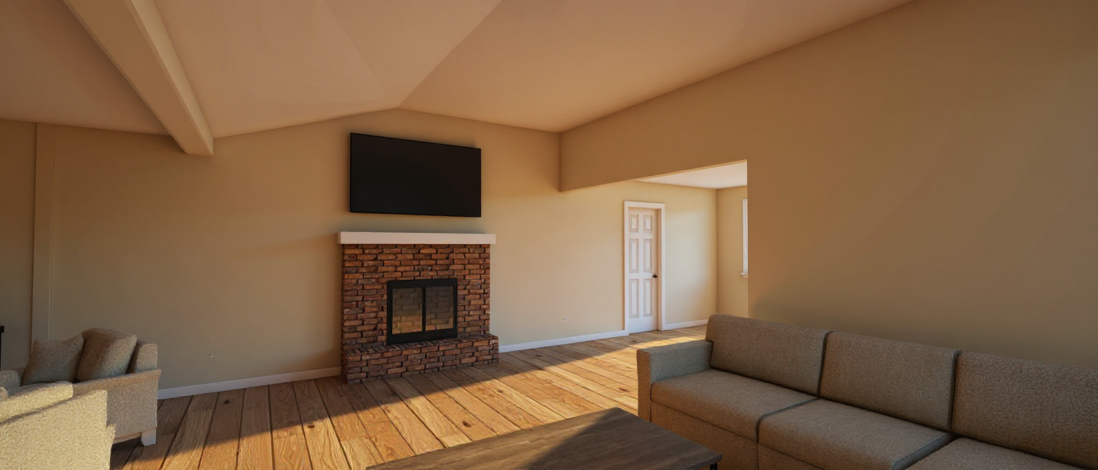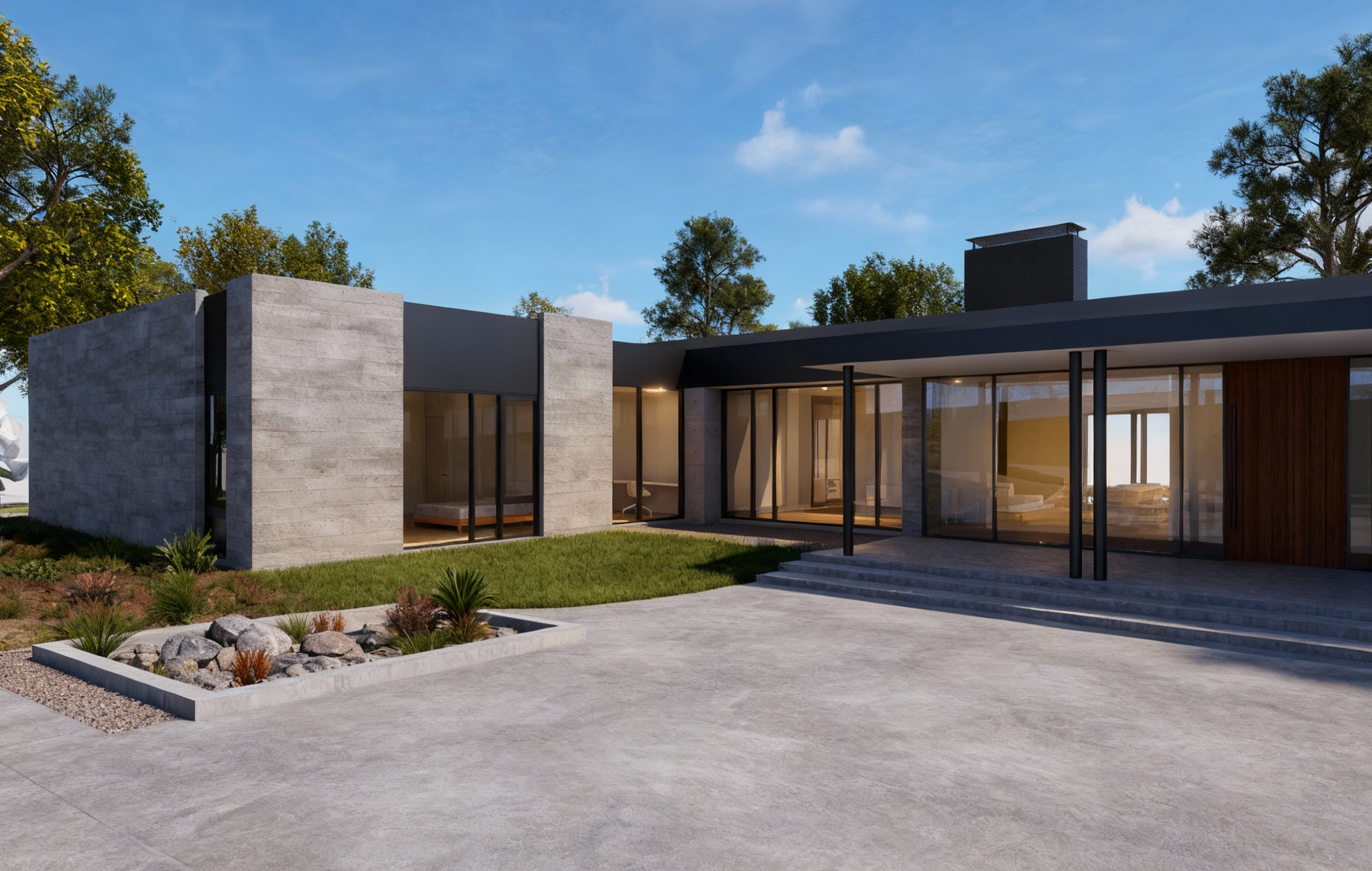 add trees around the back of the house natural landscaping within the green areas enhance realism of paved concrete driveway keep all other finishes the same or enhance them slightly