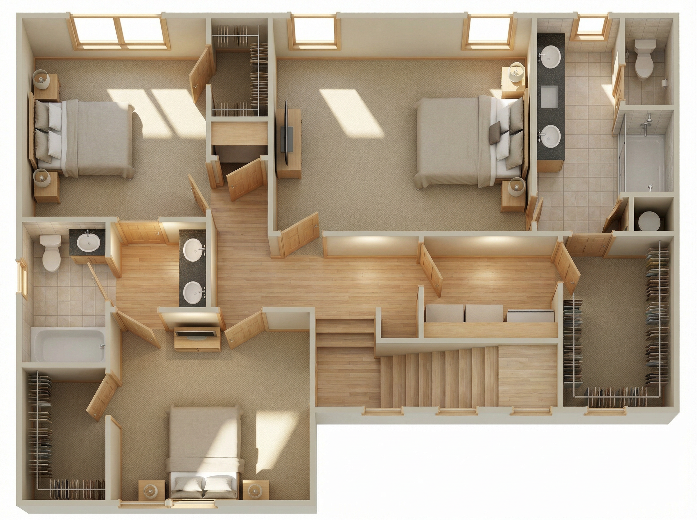 photorealistic architectural interior render of a childcare center cpe based strictly on the provided sketchup image do not add remove or modify any architectural elements furniture openings or layout keep all objects proportions and positions exactly as modeled all existing ceiling light fixtures must be turned on and emit soft realistic illumination combine artificial lighting with natural light if present keeping a balanced and believable exposure preserve the original colors and materials but enhance them with realistic textures accurate material properties and subtle imperfections wood grain fabric softness matte finishes child friendly clean calm and warm atmosphere suitable for a cpe environment realistic global illumination soft shadows correct scale neutral camera perspective no dramatic effects no stylization no artistic interpretation ultra realistic architectural visualization professional quality natural color grading no new furniture no extra decor no change in layout no change in wall positions no change in ceiling design no natural light from the doors glasses interior door all walls and ceiling must remain their orginal colors do not add new light fixture in the furniture do not change cabinets and furniture colors do not change light fixtures