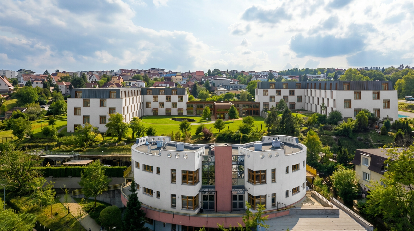 do not change the shape of the buildings or the land use create a photorealistic view summer evening add people smoking cigarettes at the benches