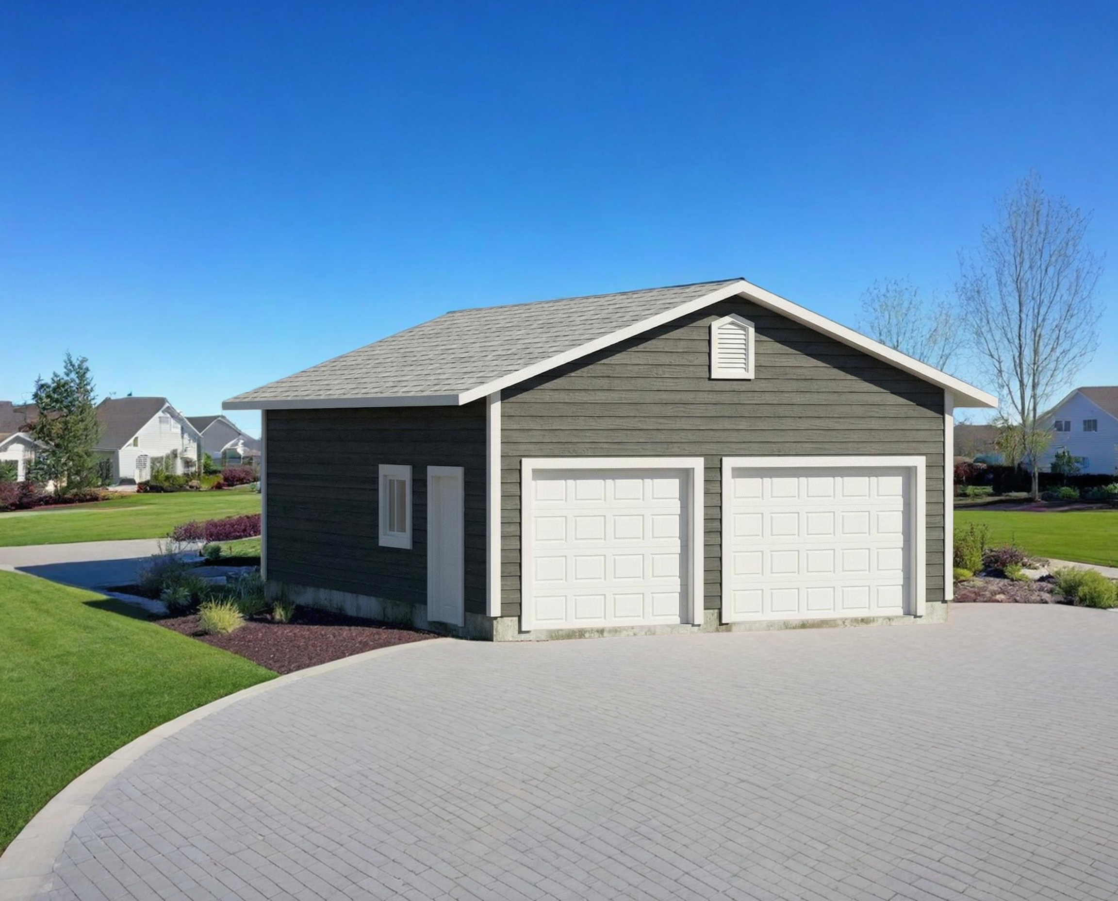 make the driveway not circular and a standard striaght driveway in front just as wide as the building dont show houses in the background just landscaping