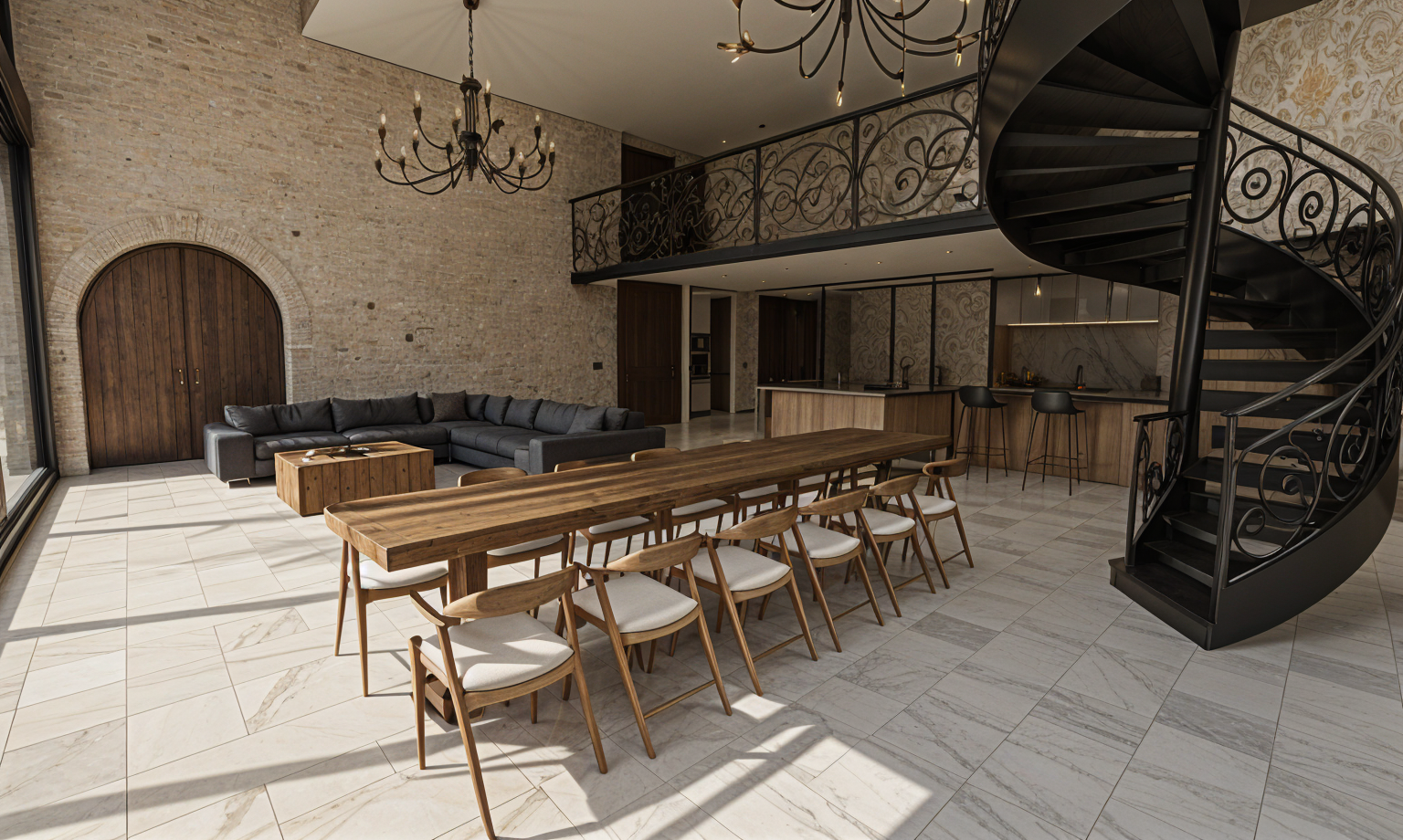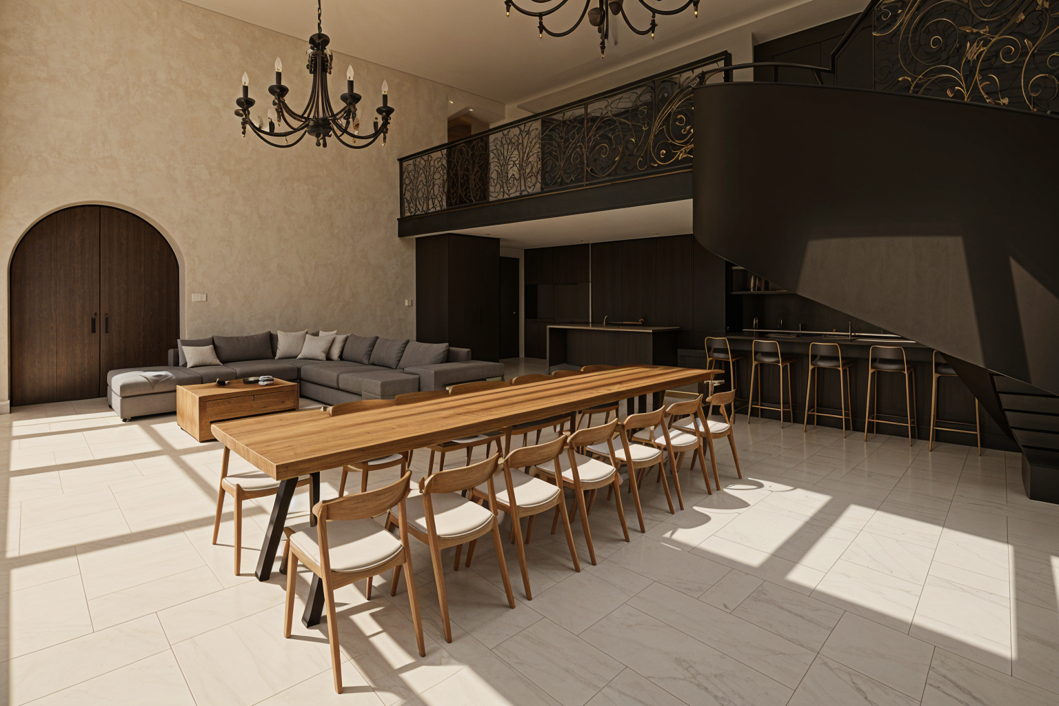convert this floor plan into a modern isometric 3d view of a full house show the space from an elevated angle with furniture walls and details visible use the same furniture as shows on the plan