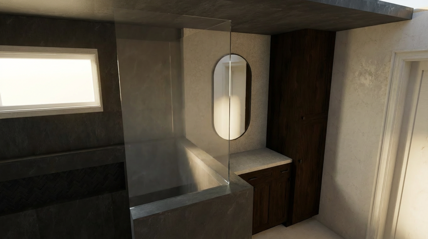 render this image with coastal modern finishes use reference image for background context for the site create photo realistic image for realestate ad
