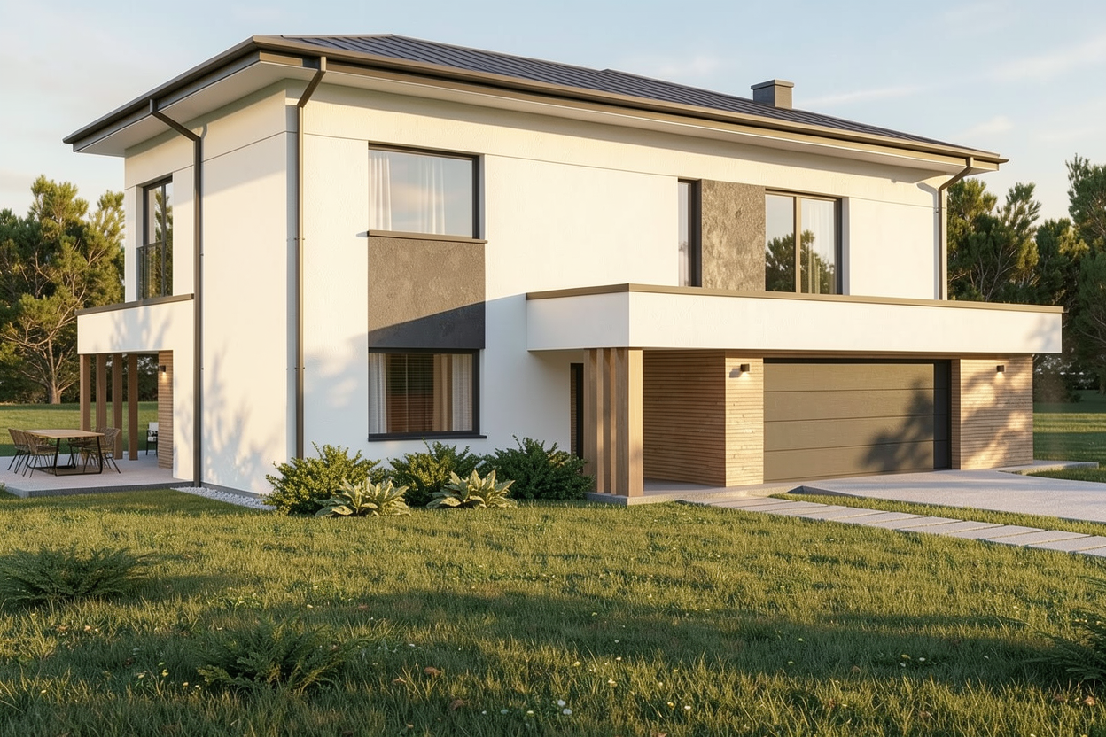 environment beach sandy dunes slightly uneven terrain vegetation romanian seaside coastal flora dune grasses low shrubs beach wildflowers background minimal sea not visible horizon slightly blurred lighting warm daylight soft shadows subtle golden hour vibe atmosphere mild haze for depth gentle wind on grasses materials highlights platform sidewalk teak deck rich warm brown clear wood grain slightly polished to catch light containers top and short sides aluminum panels subtle metallic sheen soft reflections to emphasize texture back sides vertical teak planks natural warm finish pronounced grain front sides panel 1 vertical teak planks highlighted grain panel 2 glass reflective but not overpowering panel 3 double glass door subtle reflection panel 4 glass panel 5 vertical teak planks emphasis lighting and camera angles highlight the contrast between warm teak and cool aluminum rendering style photorealistic architectural visualization wide angle view showing both levels and central gap depth of field containers sharp background slightly soft shadows soft natural coherent with light source cinematic color grading warm natural tones enhancing wood and metal textures optional soft vignette to frame the model
