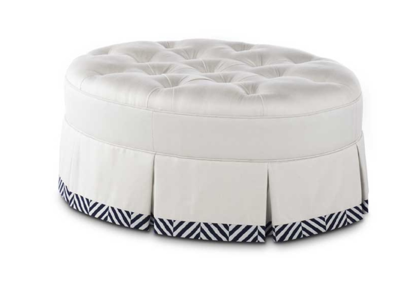 replace all fabric on the ottoman with the fabric shown in the reference image