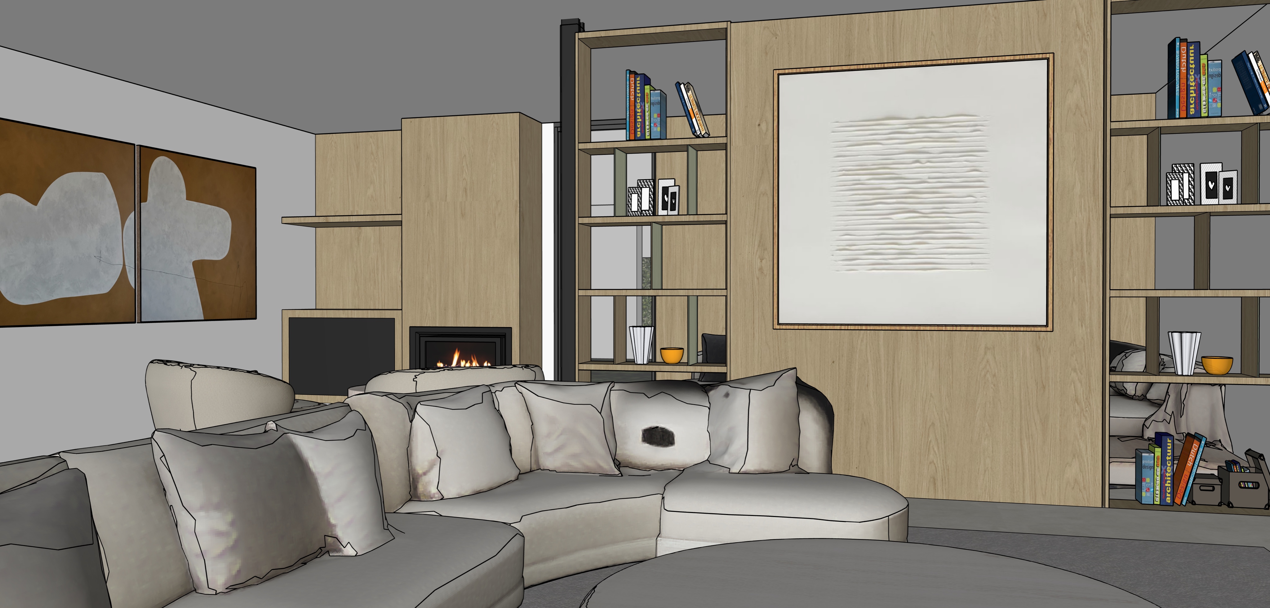 ceiling is white please make natural ilumination sofa is in linen off white color