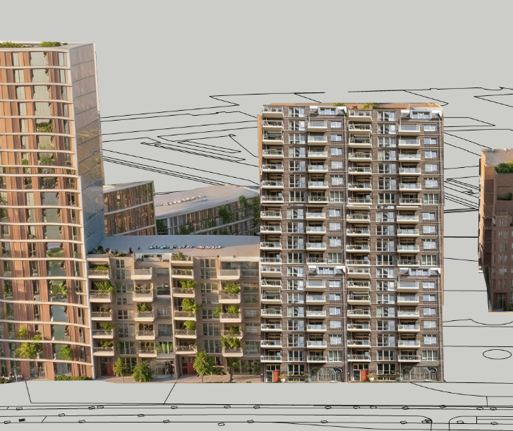 integrate images to the buildings leave context as it is keep perspective
