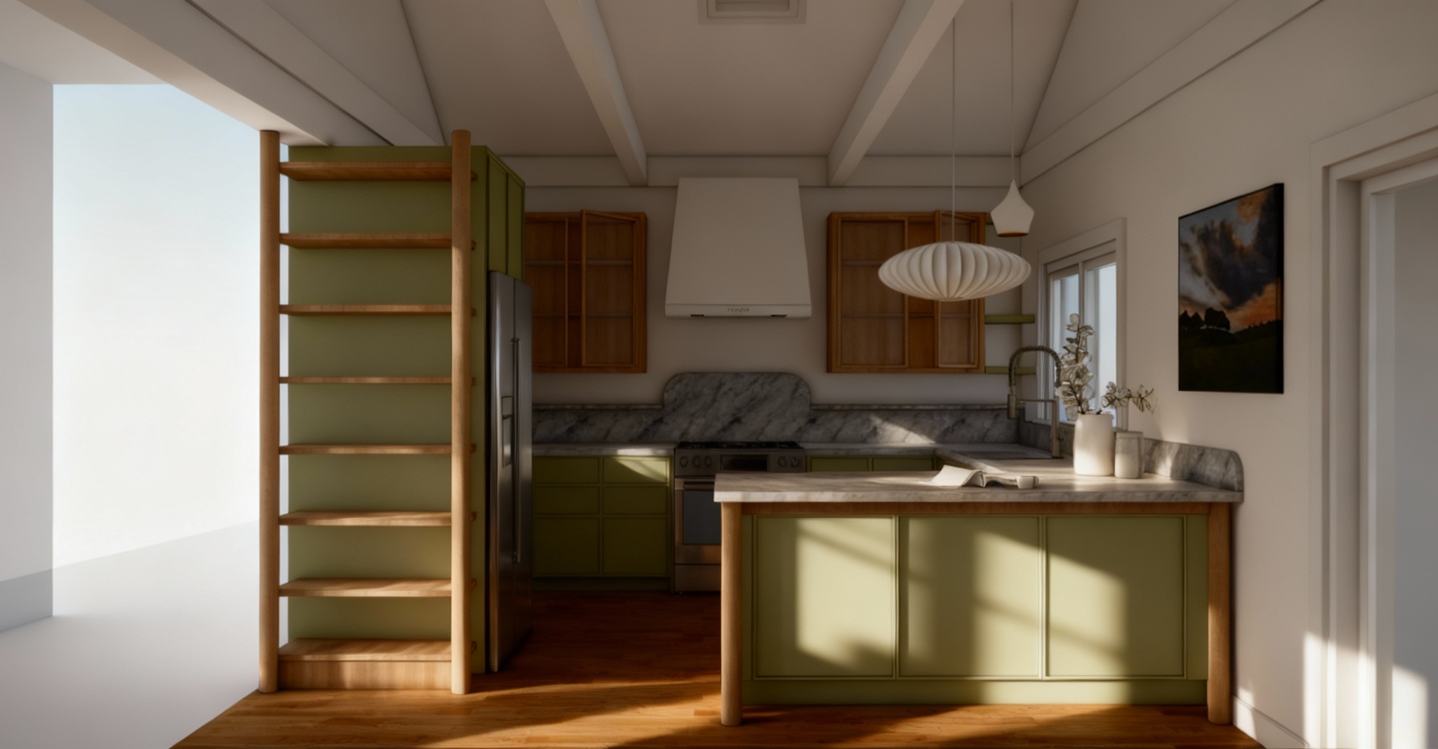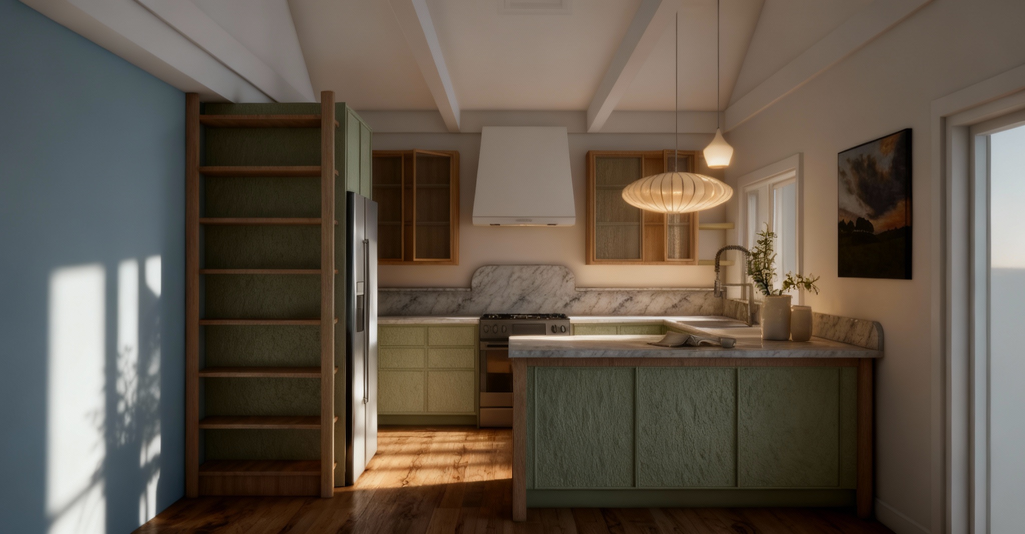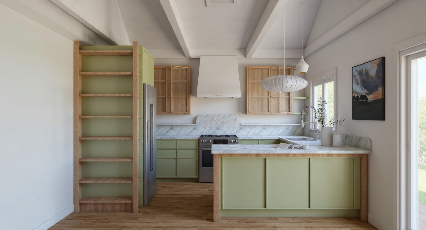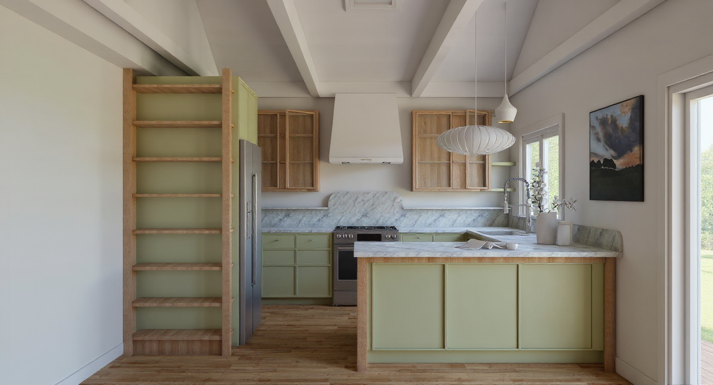 render this corporate office building and add a ceiling with lights and put a sign above the door
