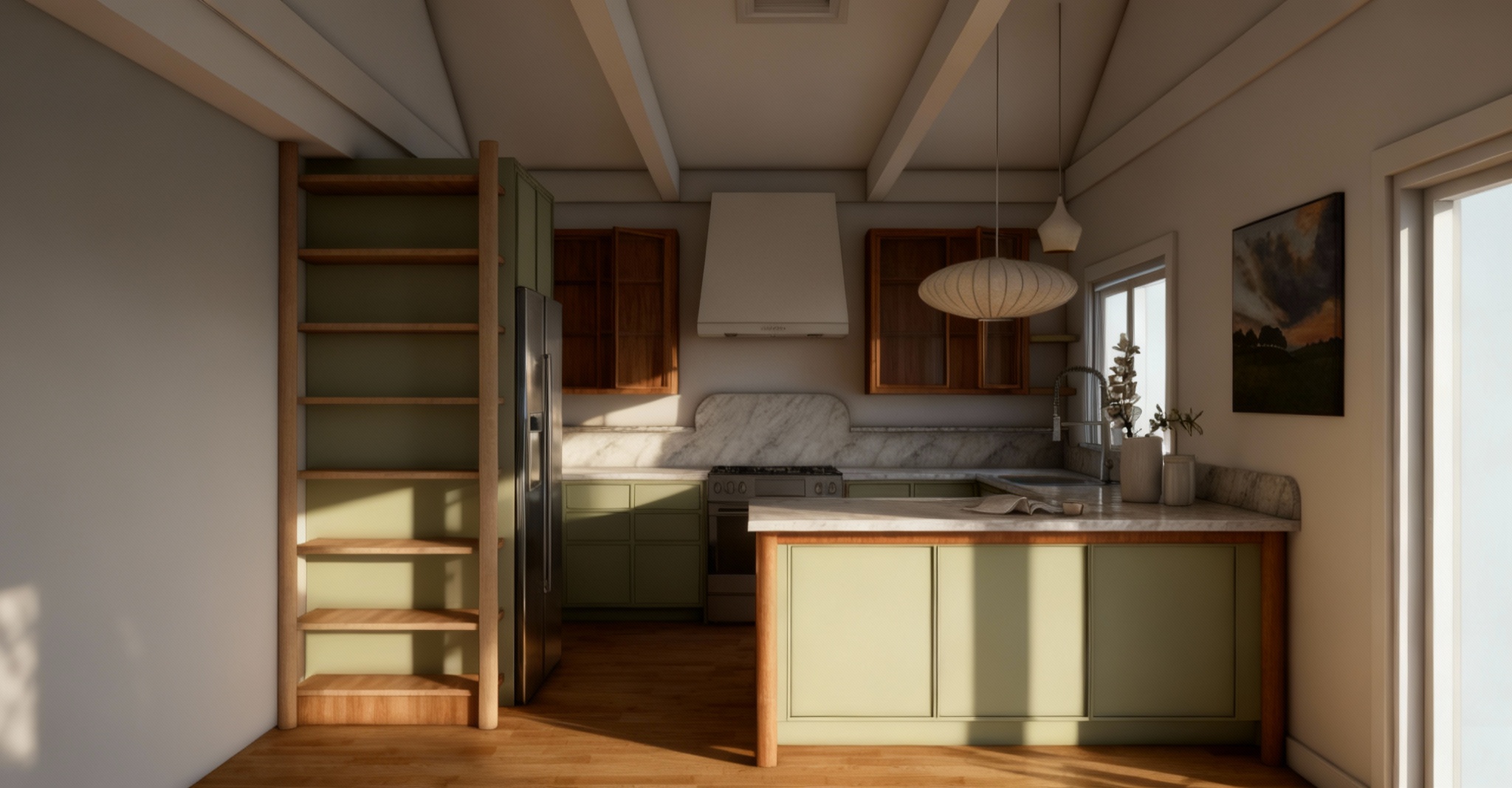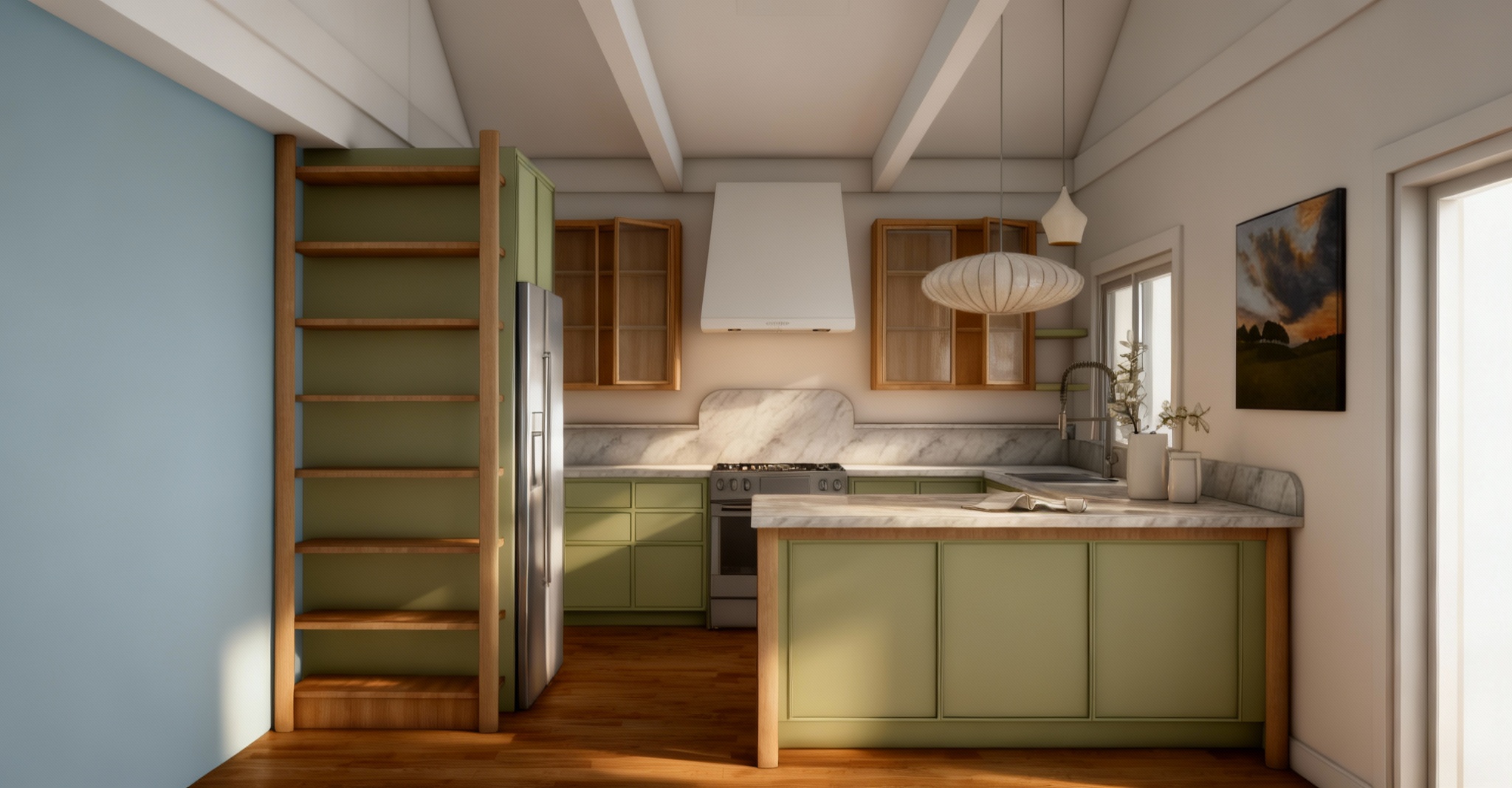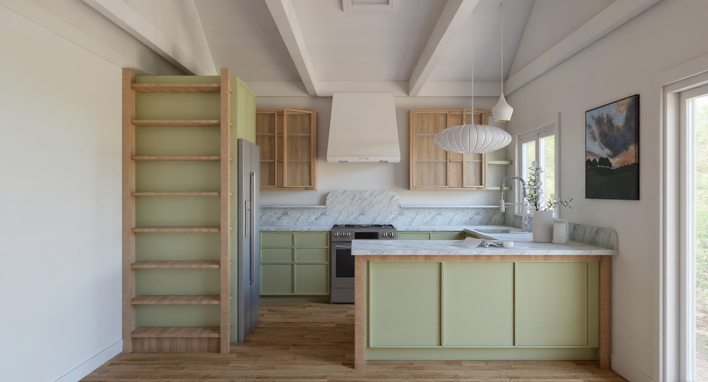 render this corporate office building and add a ceiling with lights and put a sign above the door