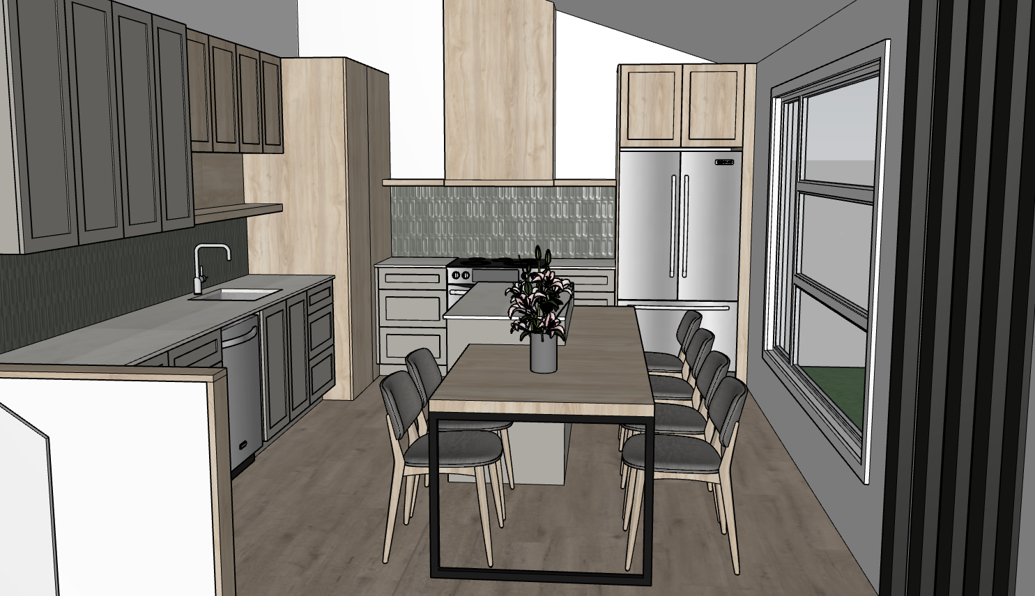 ajoute un luminaire au dessu de l ilot et de l clairage sous les armoires