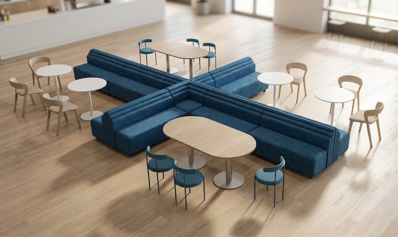 tables white and carpet flooring in dark blue