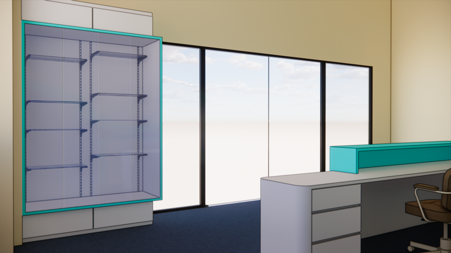 keeping the existing colour realistic render ambience lighting for display cabinet add trophy in the display cabinet