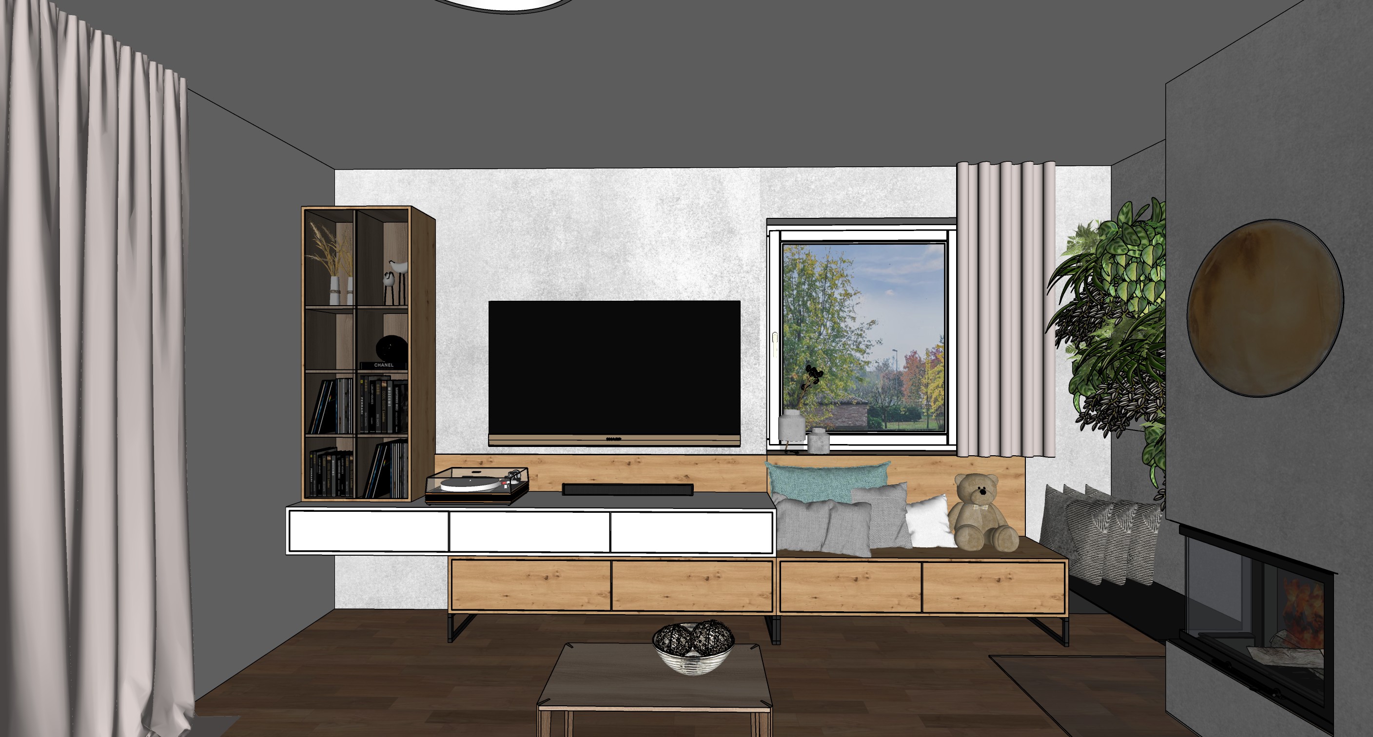 create a photorealistic interior photograph based strictly on the provided design visualization preserve the exact layout proportions furniture placement colors and all design elements without any changes or additions this is a realism enhancement task not a redesign use high quality natural materials with realistic textures wood fabrics matte surfaces and accurate detailing improve material realism while keeping original colors and finishes lighting should be soft natural daylight with subtle shadows creating a warm inviting atmosphere use balanced exposure realistic highlights and no overexposed areas add gentle ambient light for depth maintaining a cozy and harmonious mood camera should mimic a professional interior photography shot eye level perspective 24 35mm lens equivalent sharp focus high dynamic range and natural depth ensure high resolution clean composition no distortion no added objects and no stylistic reinterpretation the result should look like a real photograph of the exact designed space