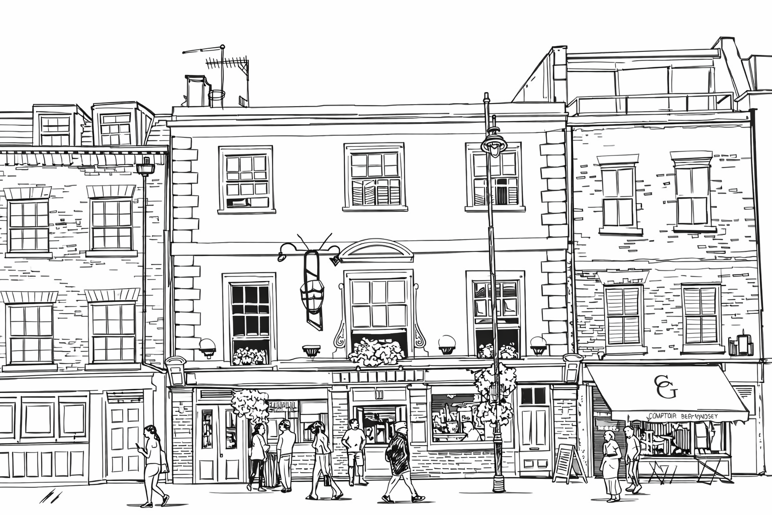 keep this as a stencil style image fill in the spaves between the black lines with a very light green watercolour effect