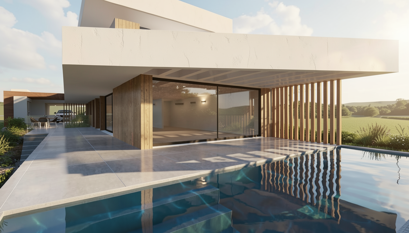 countertop and backsplash will be taj mahal marble cabinets will be quartersawn white oak with a warm finish floating shelf will be in the taj mahal marble above that will just be wood paneling photorealistic
