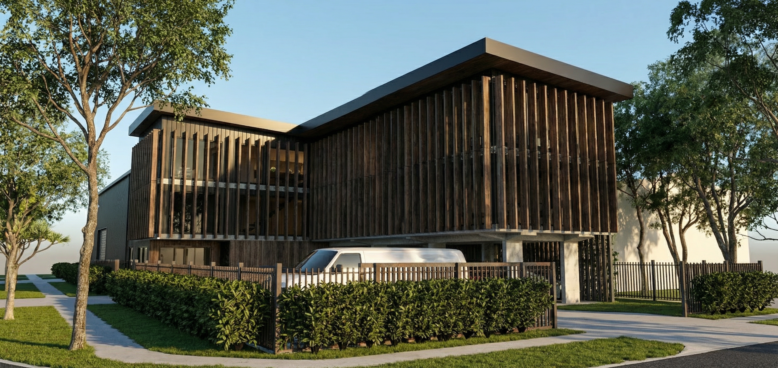 exterior shot change the flooring material to a beige tartan pattern matching the style and texture from the provided moodboard reference do not change or affect anything else in the scene keep all other materials geometry lighting and objects exactly as they are