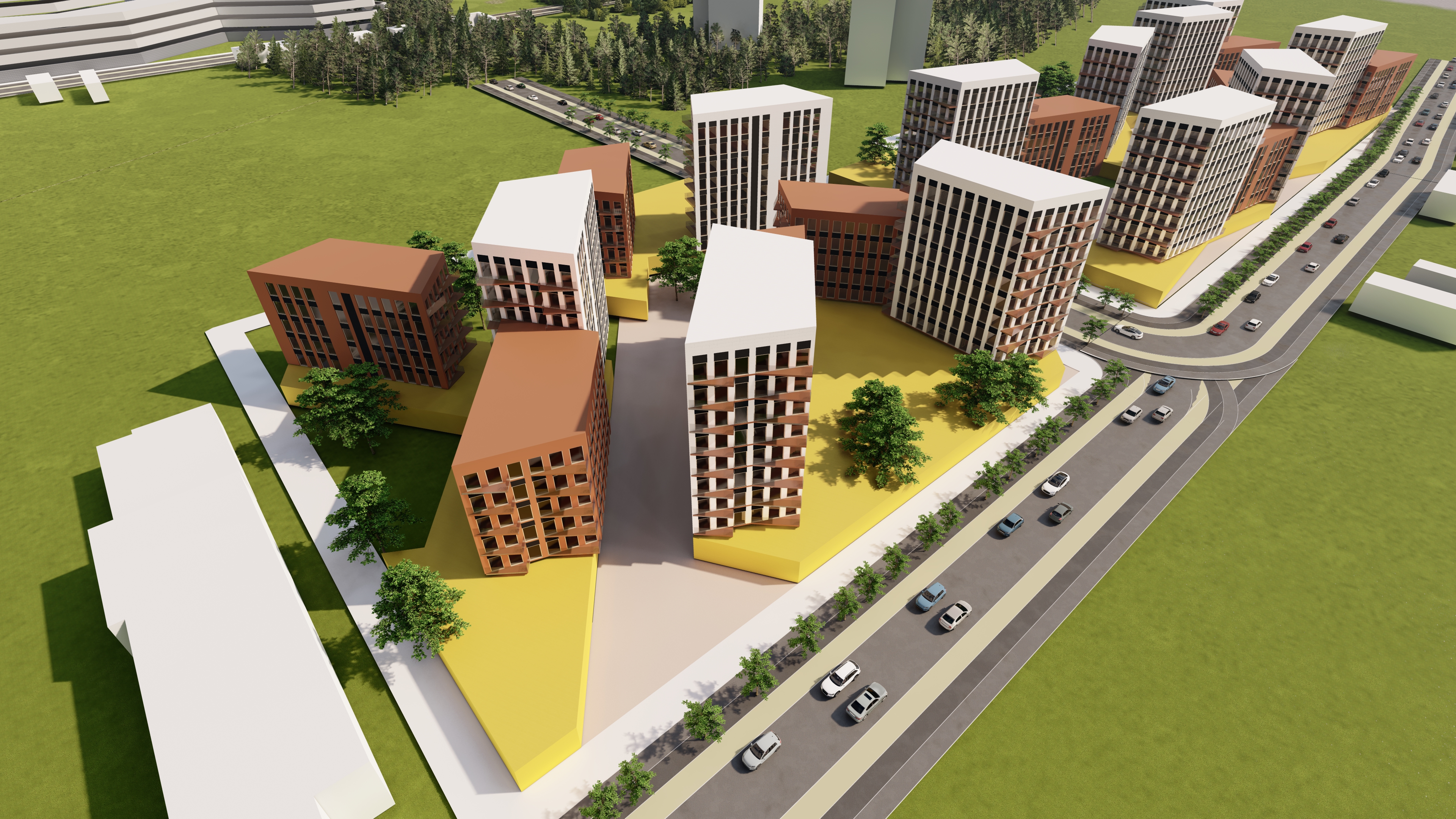 minimalism exterior shot area of apartment blocks with spaces for services on the ground floor proposal zonal urban plan architecture