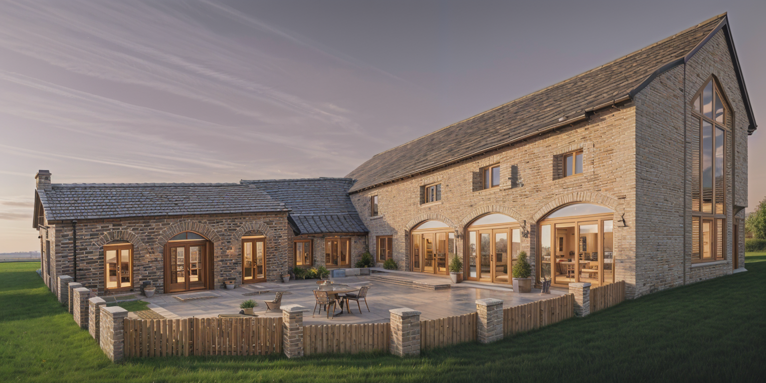 modernist exterior shot a modern luxurious kitchen with a serene and sophisticated atmosphere the room features sleek grey oak cabinetry with flutted travertine curved cabinets and a large island centerpiece made natural traavertine romano the walls are clad in a soft cashmere hue with panelling complementing the cabinetry appliances are seamlessly integrated adding a touch of contrast overhead lighting is warm and ambient creating a cozy yet refined ambiance the flooring is parquet enhancing the airy feel of the space sparse greenery adds a hint of freshness while maintaining the minimalistic and clean design outdoor light from the right hand side window view is of luxury villa style architecture