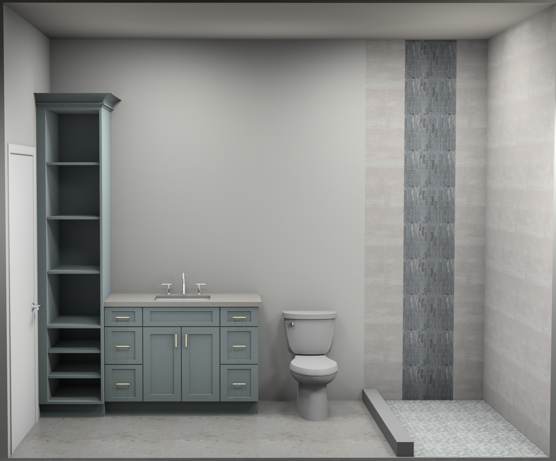 add a shower head and valve to the shower add shiplap to the back wall and ceiling