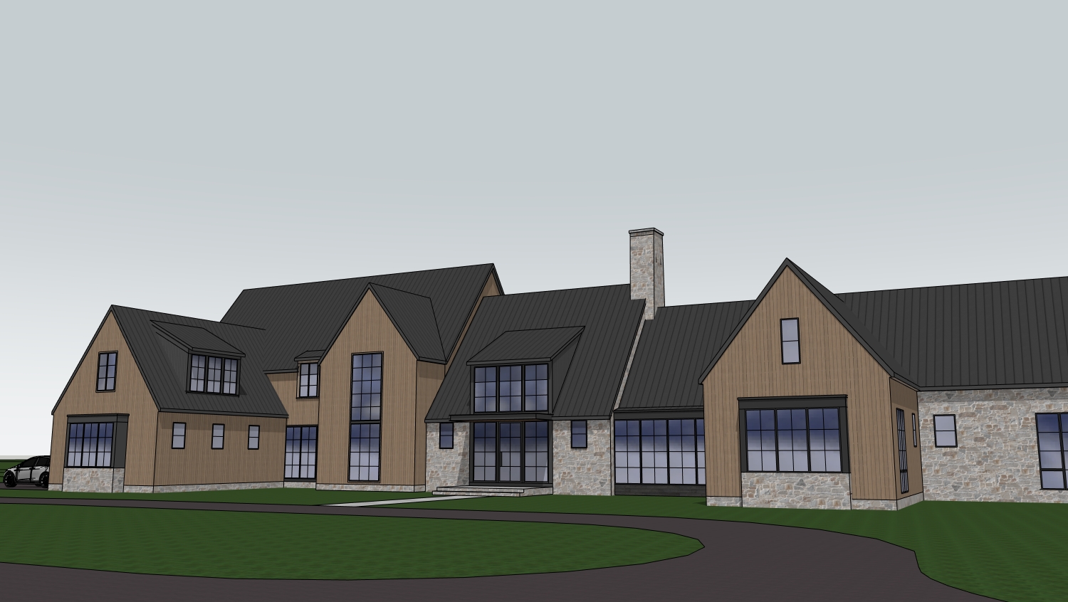 photorealistic natural looking landscaping no flowers just tall grasses etc add trees to the background
