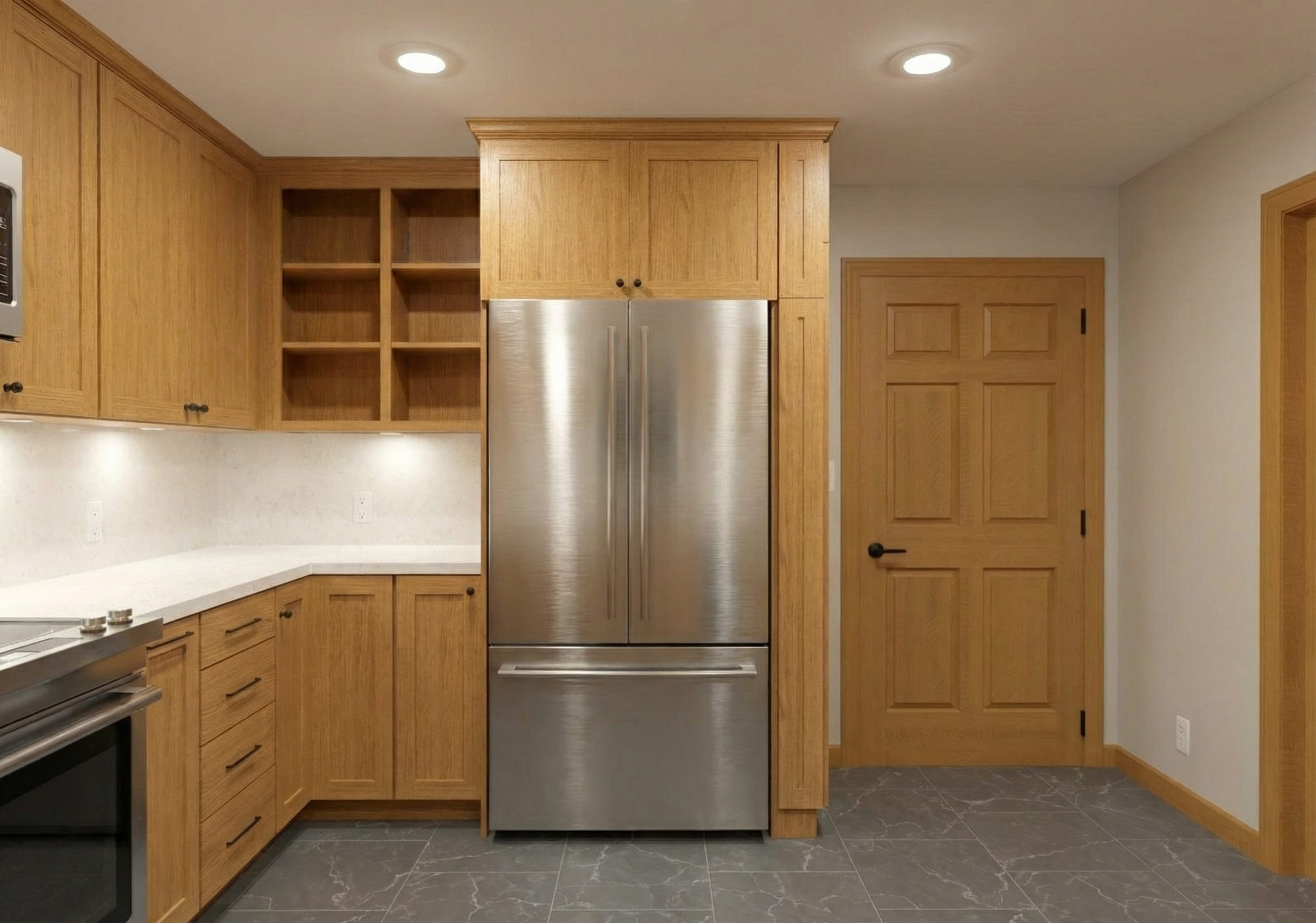 create a photorealistic 3d interior visualization of the entire 2 kk apartment strictly based on the uploaded floor plan respect exact dimensions wall positions window locations and layout do not modify the floor plan style timeless modern elegance warm neutral tones realistic and buildable materials warm beige walls light travertine or stone accents walnut or warm oak veneer black matte or brushed bronze metal details warm white lighting 3000k living area minimalist handleless kitchen in beige or taupe stone countertop integrated appliances light fabric sofa wood dining table indirect led lighting natural proportions bedroom upholstered bed built in wardrobe in wood veneer soft indirect lighting calm neutral atmosphere bathroom large format tiles 60x120 cm walk in shower with glass partition floating vanity with stone top black fixtures hidden linear drain hallway built in storage large mirror subtle lighting rendering ultra realistic materials natural light and shadows high end real estate marketing quality photorealistic no exaggerated shapes everything realistically buildable in central europe