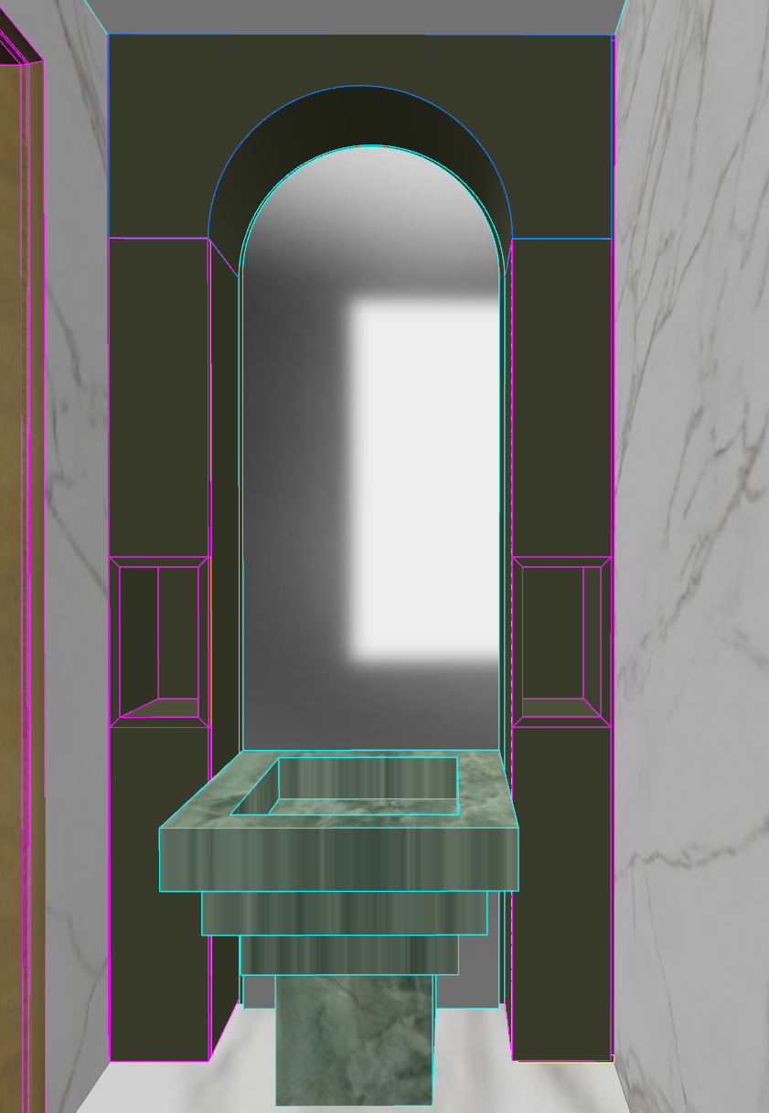 there are leds behind the mirror and in the niche the marbles are slightly bright