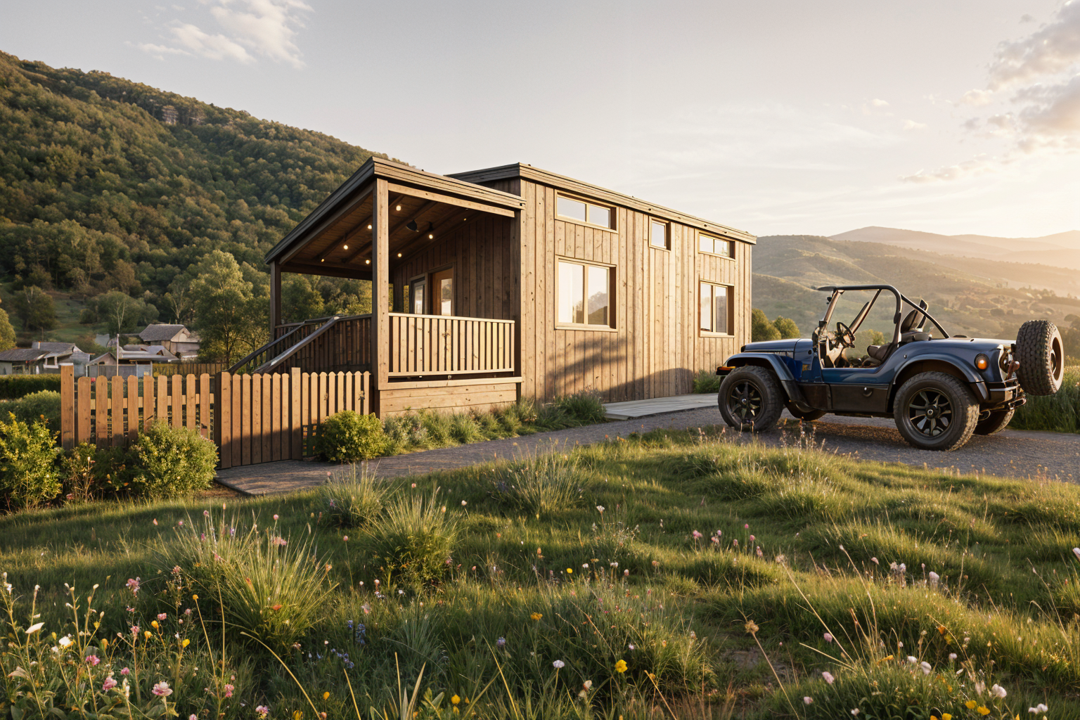 give this front exterior an updated farmhouse style leaving all structural elements as is if you could zoom out a bit more than the original image to give it more space around the house warm white vertical board batten matte black windows square off the columns and remove the stone and create a squared off roof on the left side instead of a hip roof
