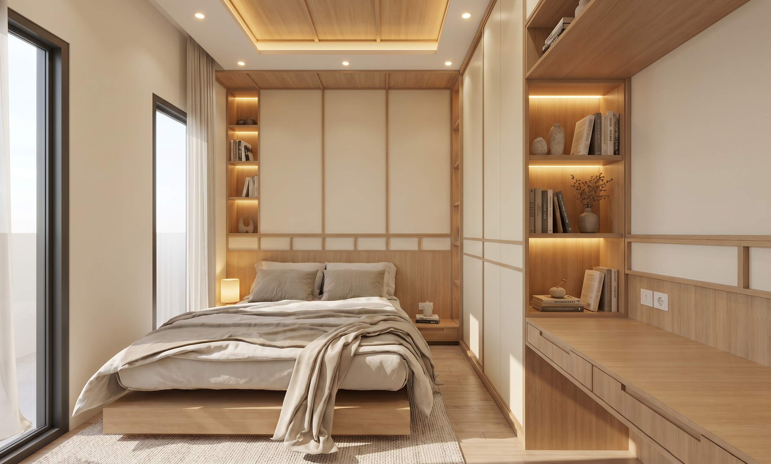 make the view hyperrealistic improve the reflections but do not modify the textures and the paintings enhance the lighting to create a golden hour effect the curtain is made of red velvet 5 meters high improve the velvet effect do not modify or add any curtains make the matte effect of the slats on the wall and above the red curtain more realistic the armchairs are by baxter and made of dark brown leather improve the leather texture add books and littre objects in the library